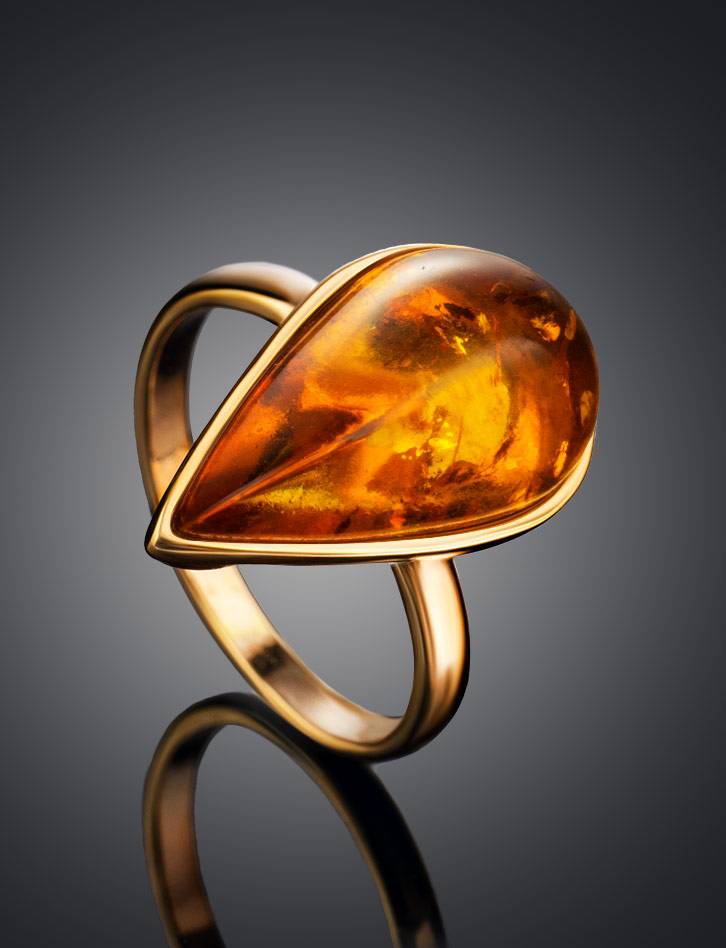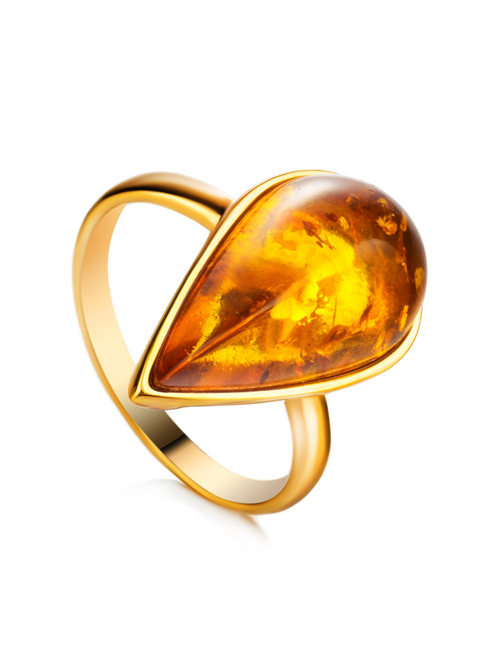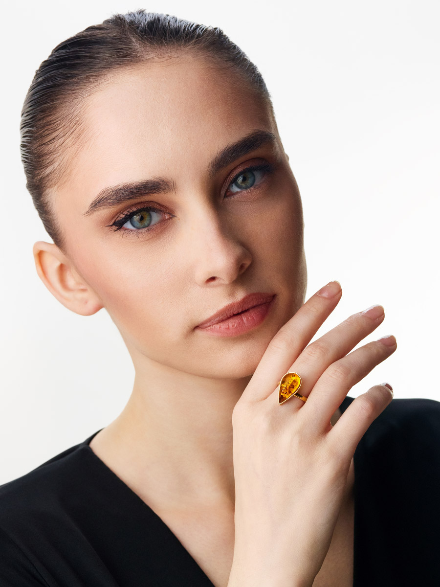 Эффектное кольцо из золотистого янтаря «Импульс»