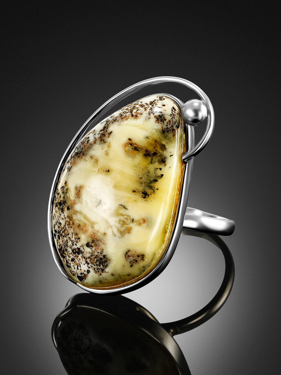 Эффектное кольцо с натуральным текстурным янтарём «Риальто»