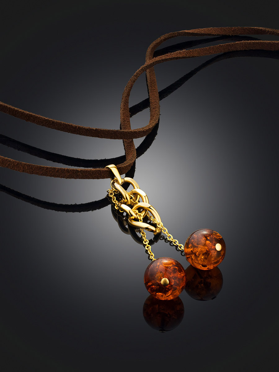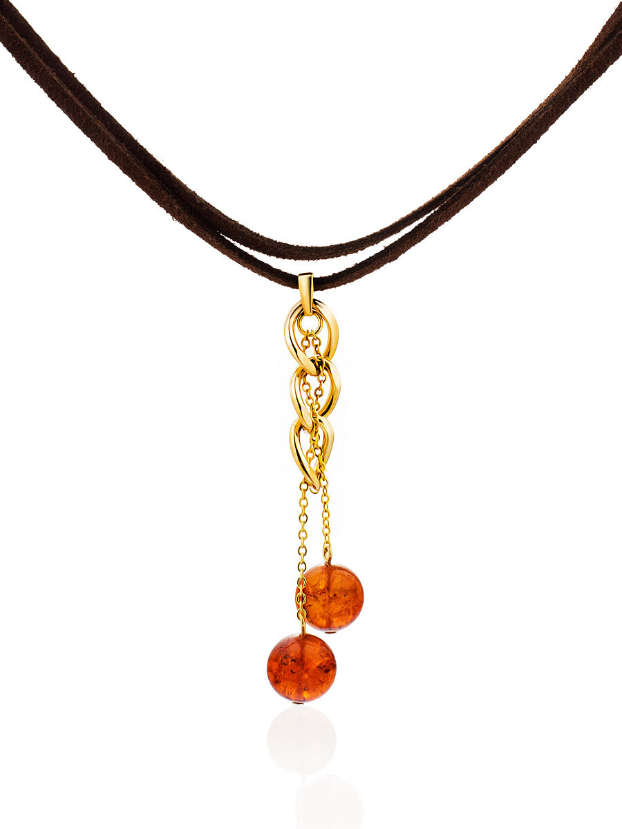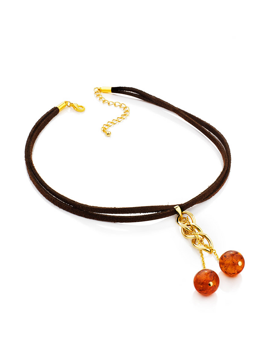 Эффектное колье-чокер с подвеской из натурального янтаря