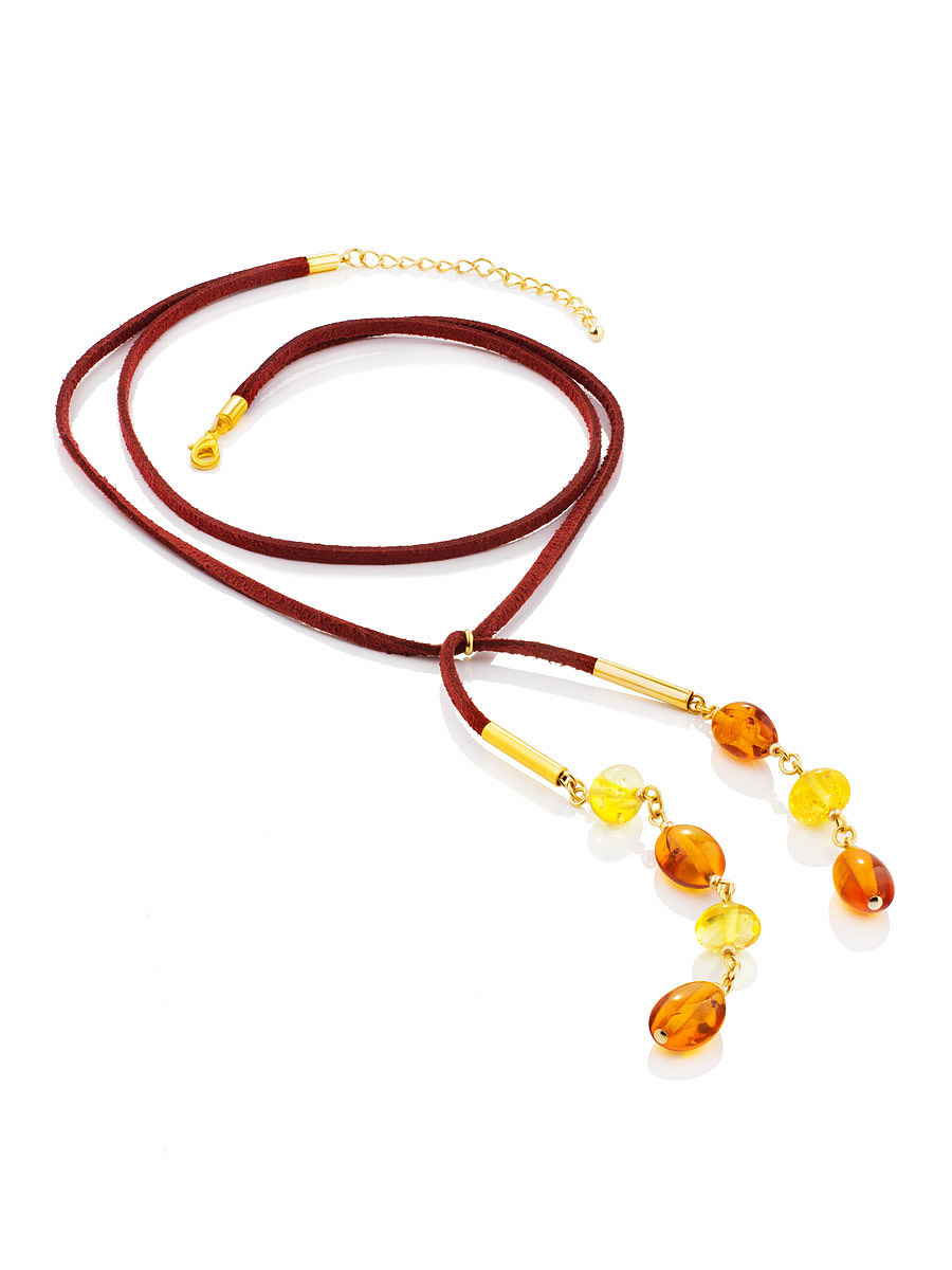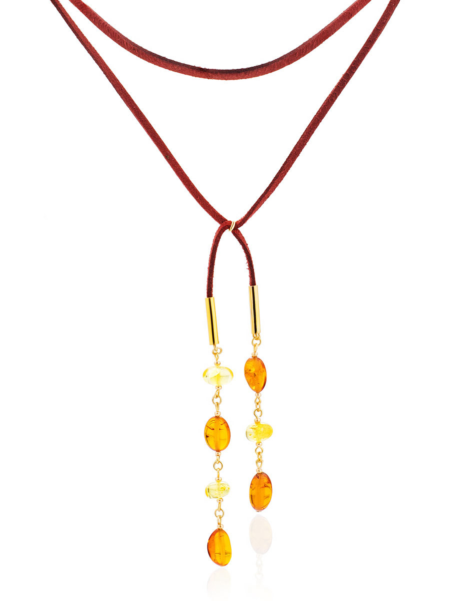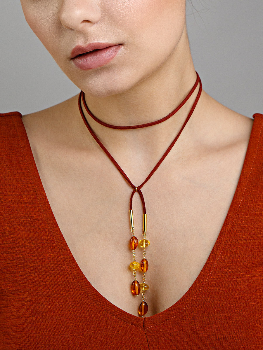 Эффектное колье-чокер с подвеской из натурального янтаря