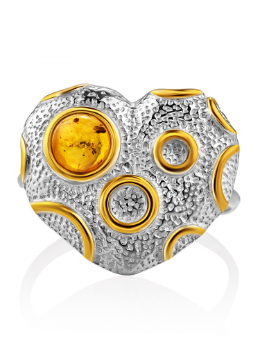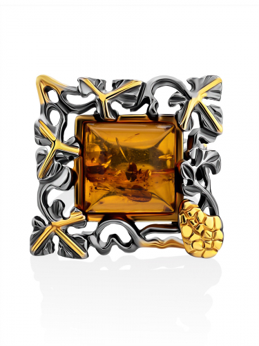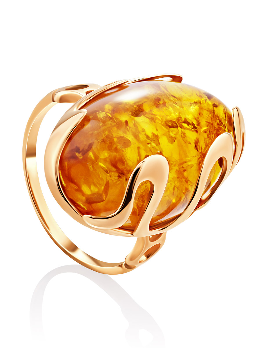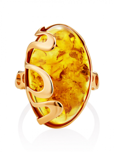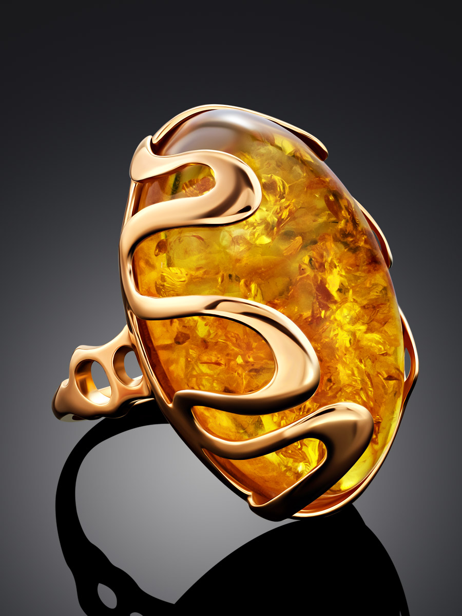 Эффектное объёмное кольцо «Иллюзия» из натурального янтаря