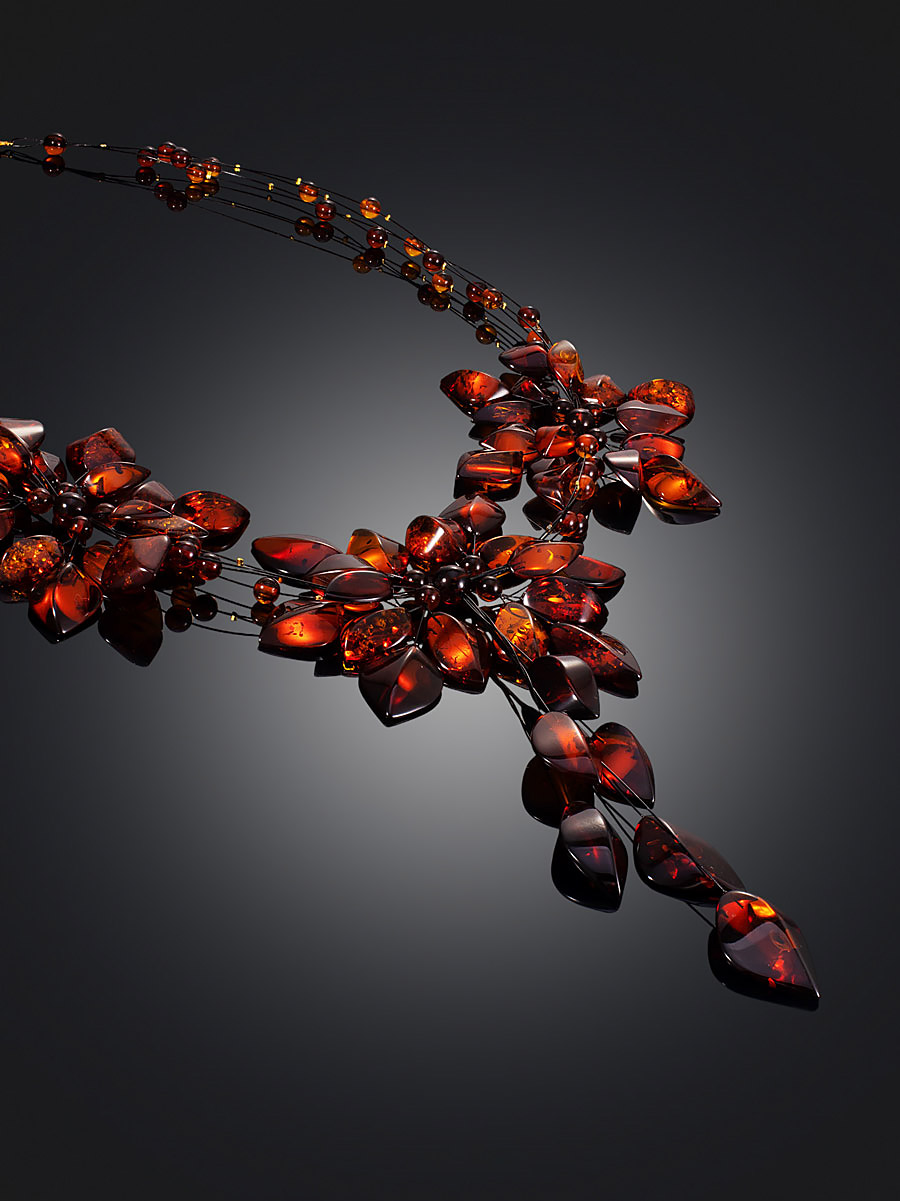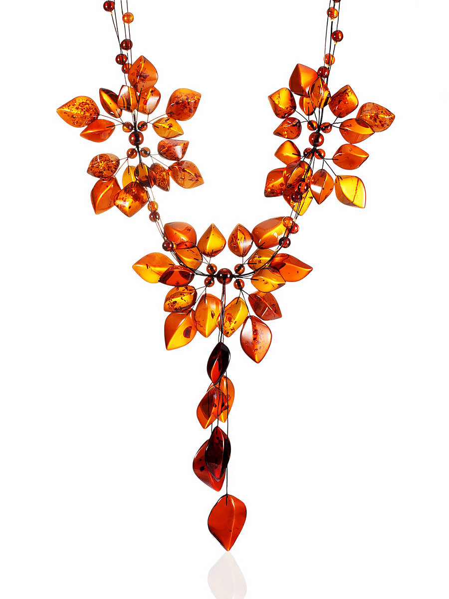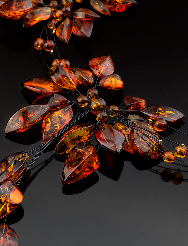 Эффектное объёмное колье из цельного янтаря «Первоцвет»