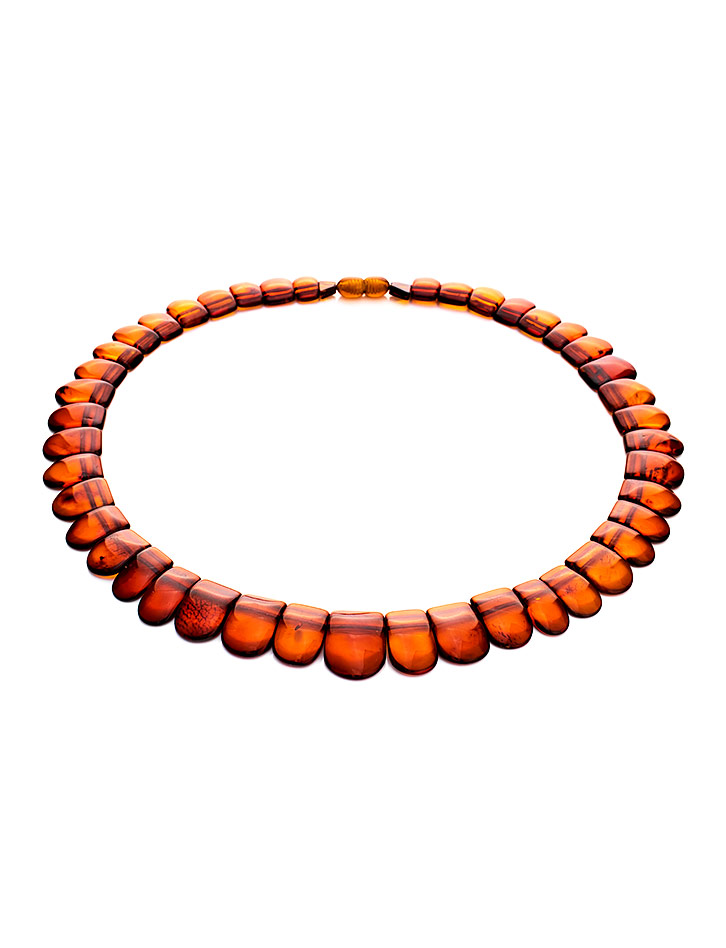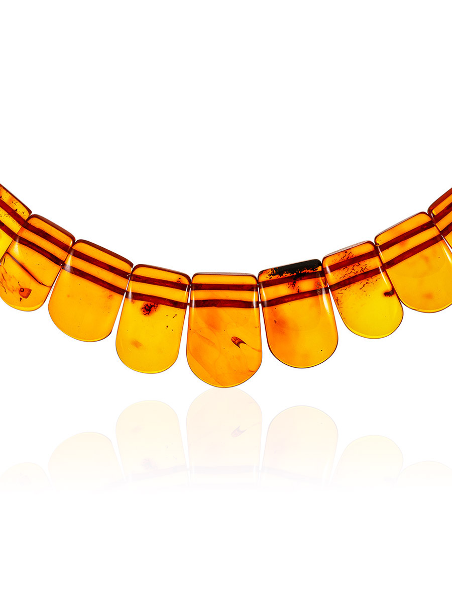 Эффектное плоское колье «Пластинки» из тёмно-коньячного янтаря