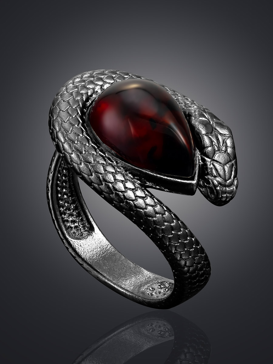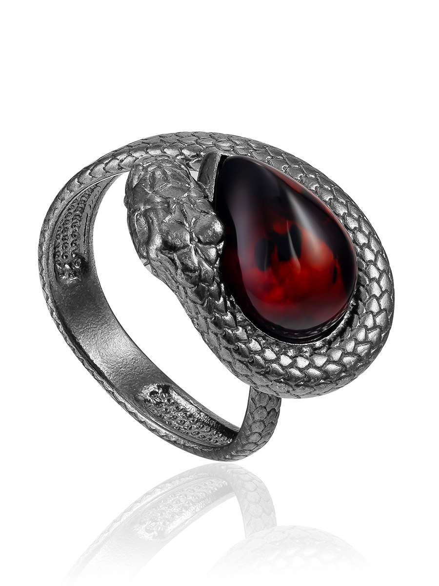 Размеры камня (мм): 11х7 Вес изде..показатьлия (г): 3.5 Цвет: вишневый Материалы: Серебро 925° / Натуральный янтарьКольцо «Эдем» из чернёного серебра с вишнёвым янтарём: 306312074_x000D_