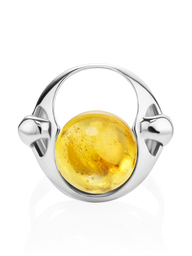 Эффектное текстурное кольцо «Эдем» с вишнёвым янтарём