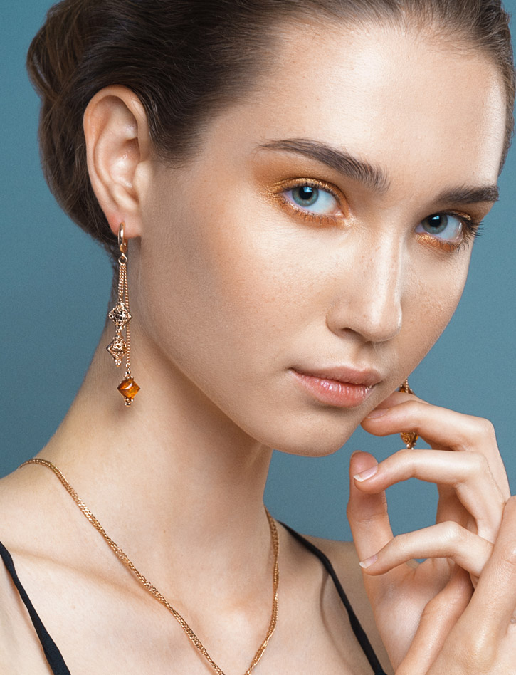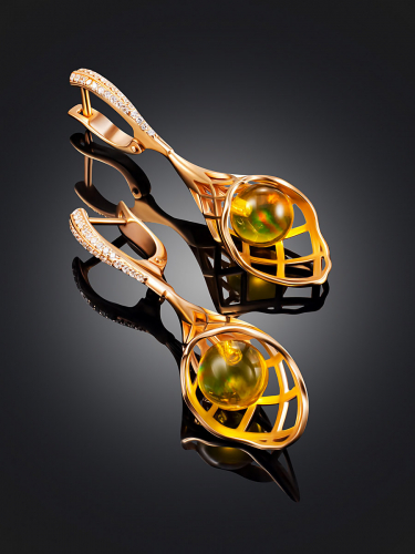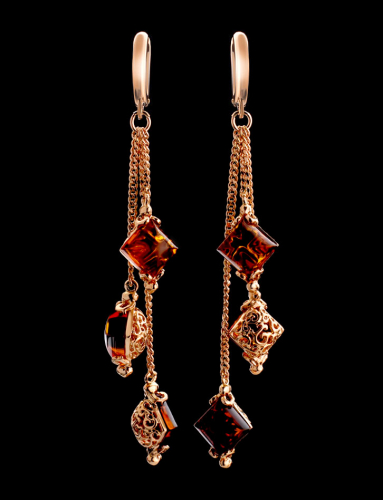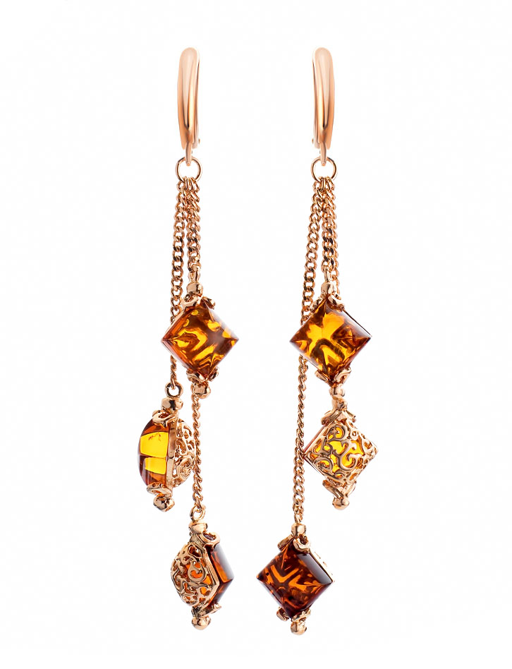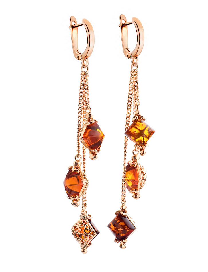 Эффектные и изысканные серьги «Касабланка» с янтарём коньячного цвета