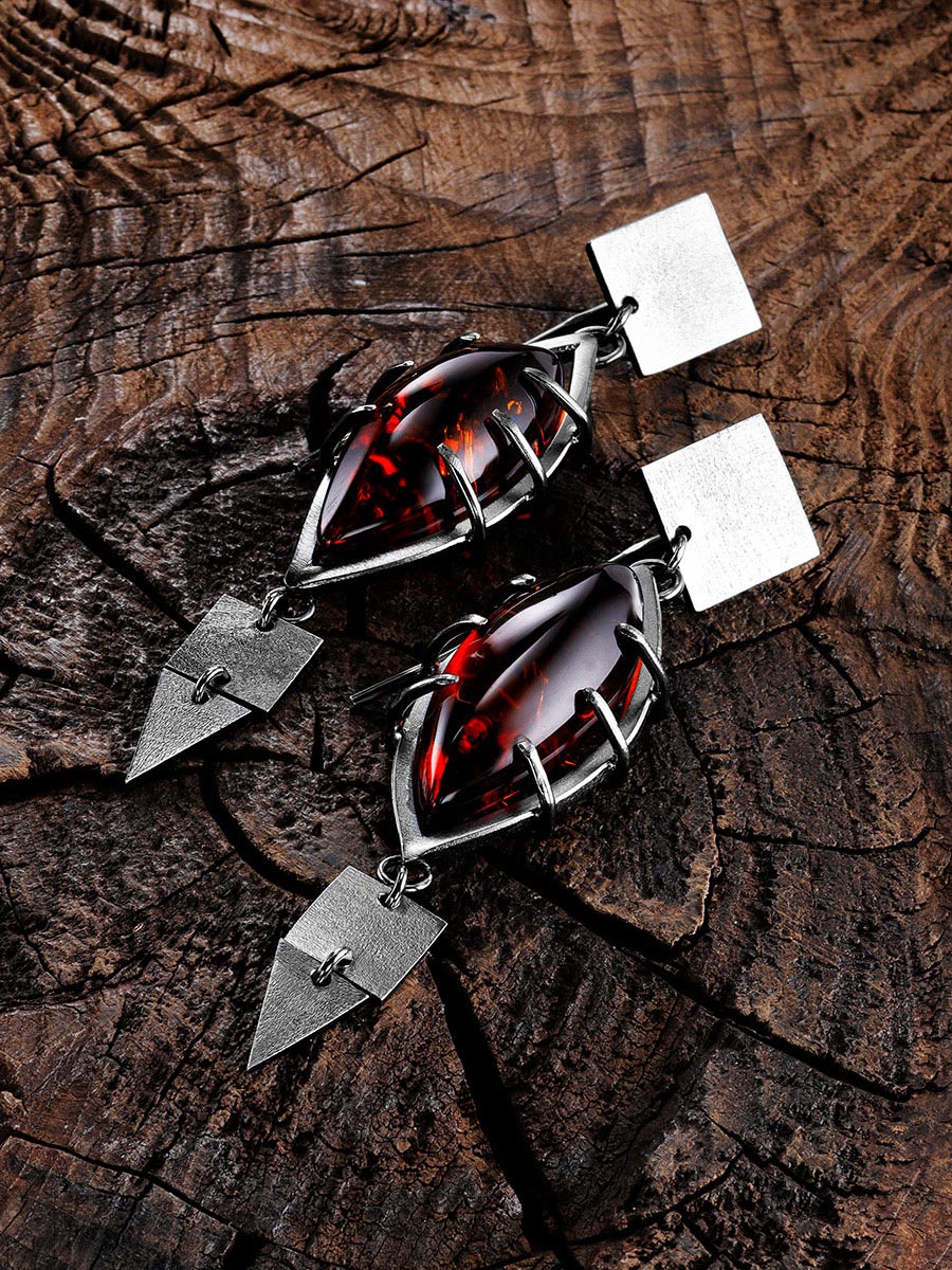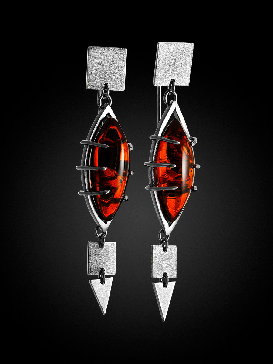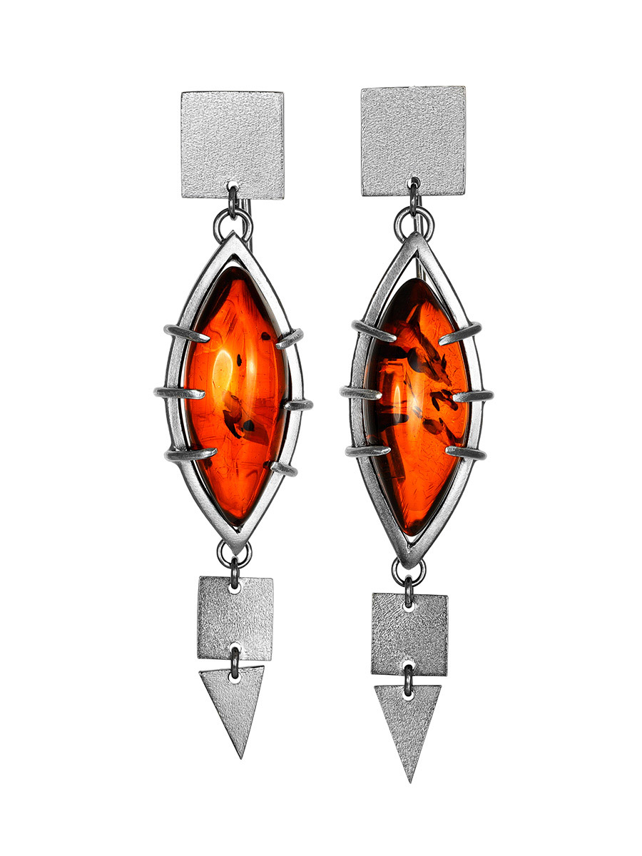 Эффектные крупные серьги из янтаря коньячного цвета «Канкун»