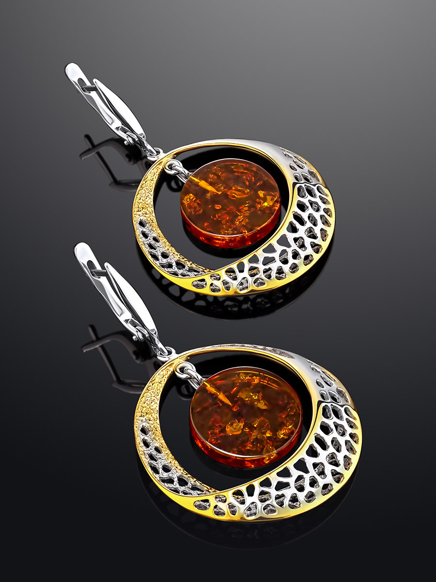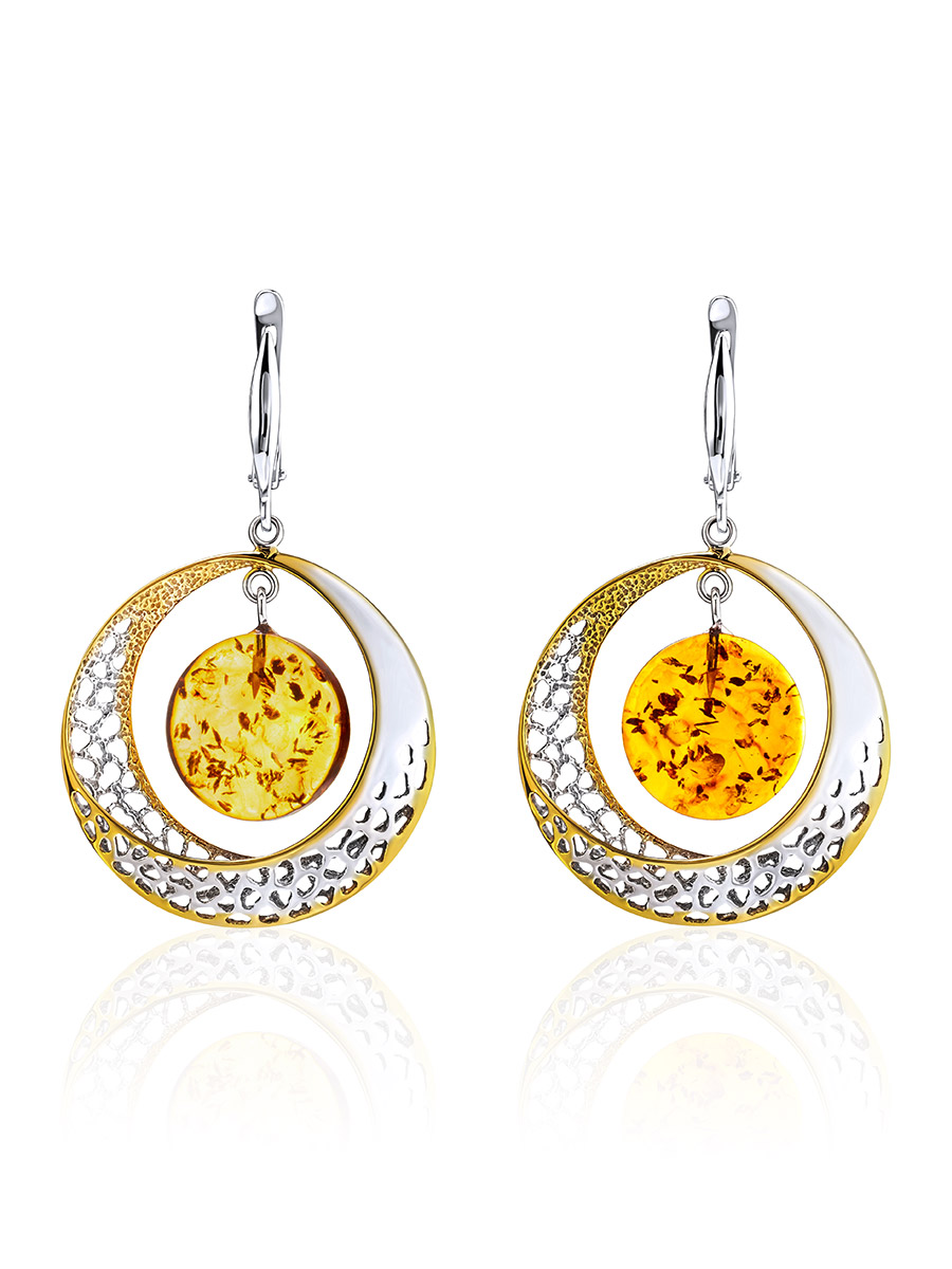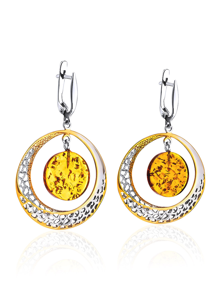 Эффектные крупные серьги из золотистого янтаря «Венера»