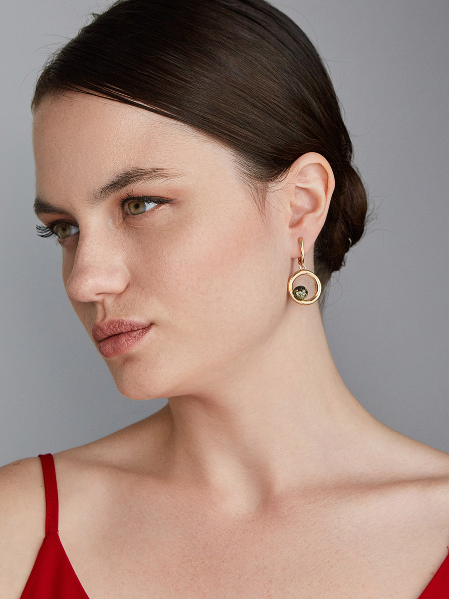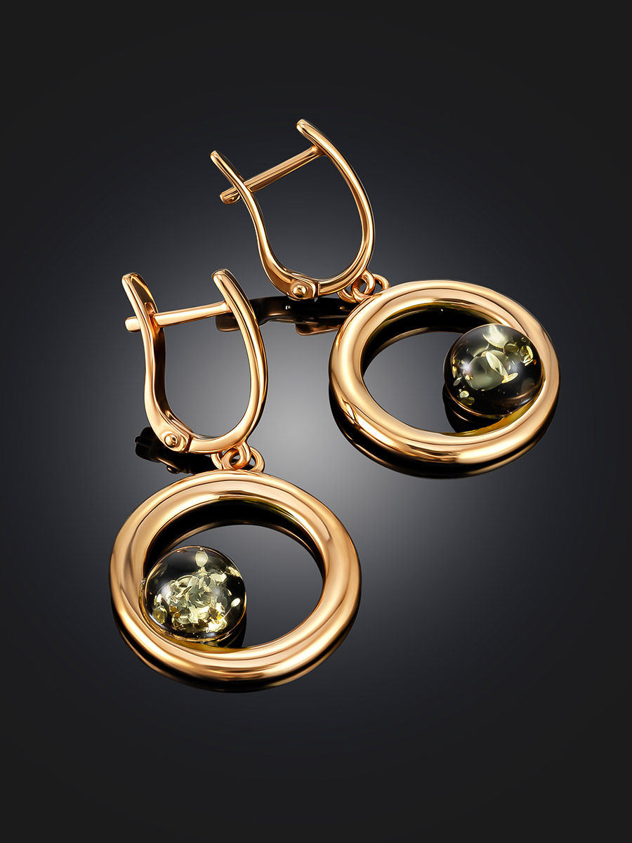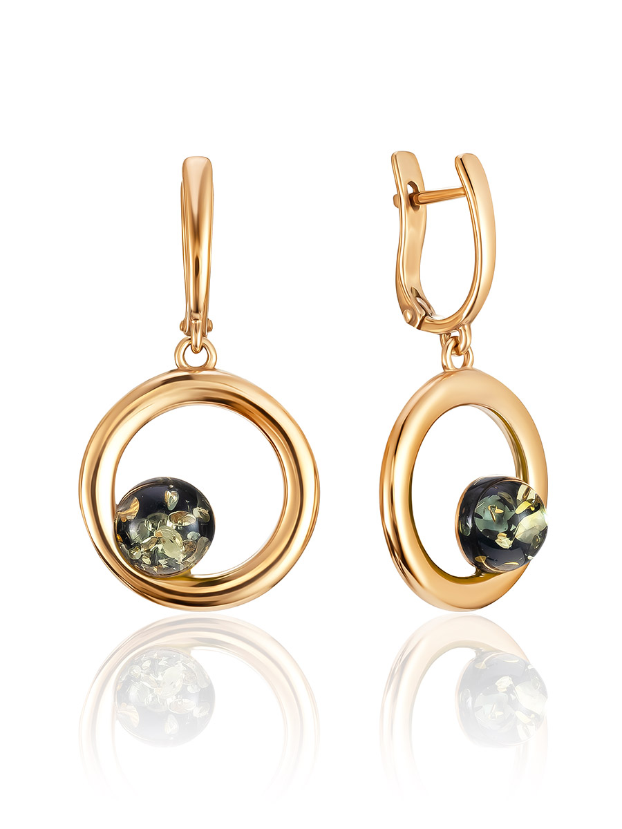 Эффектные позолоченные серьги с зелёным янтарём Palazzo