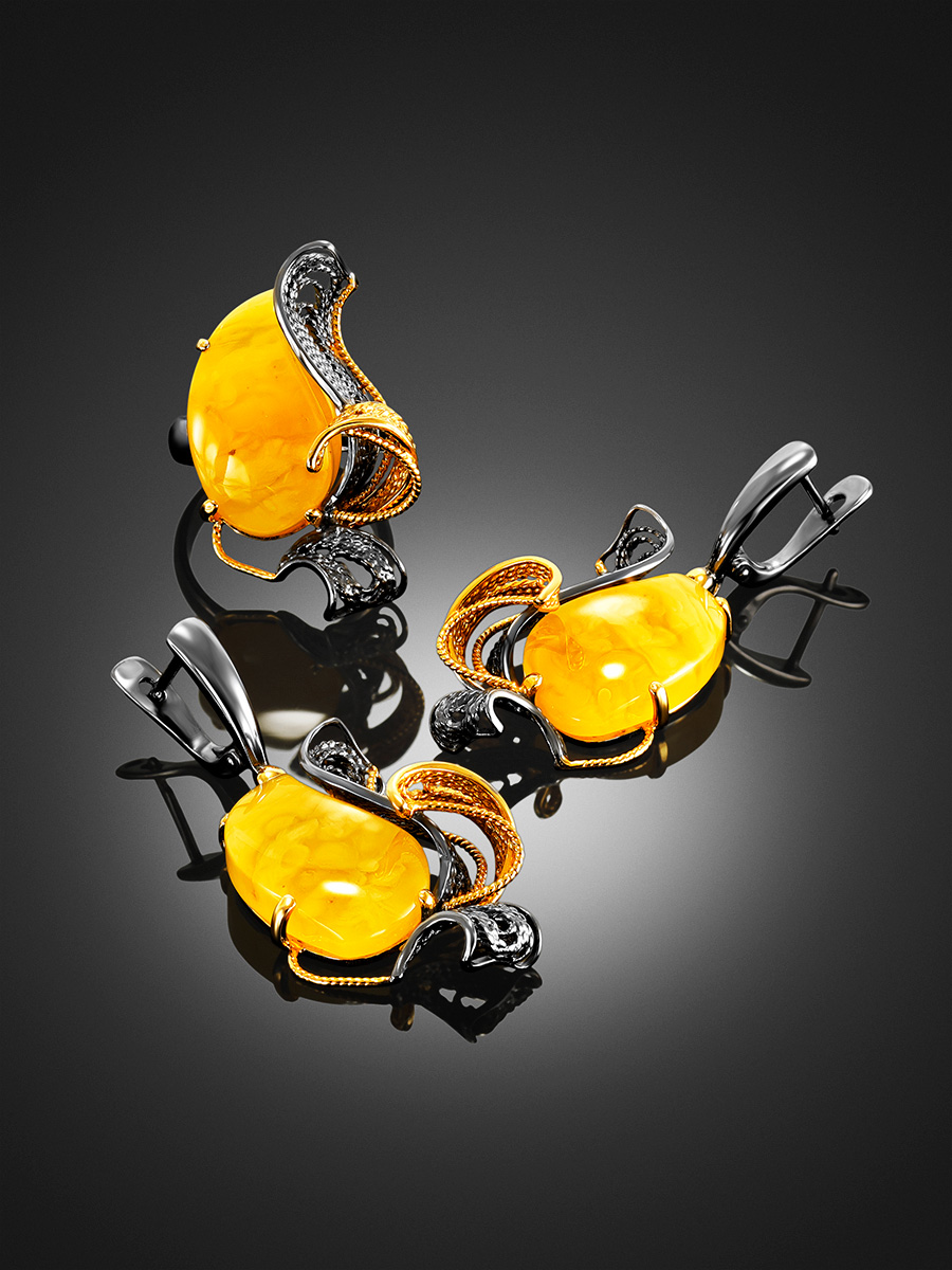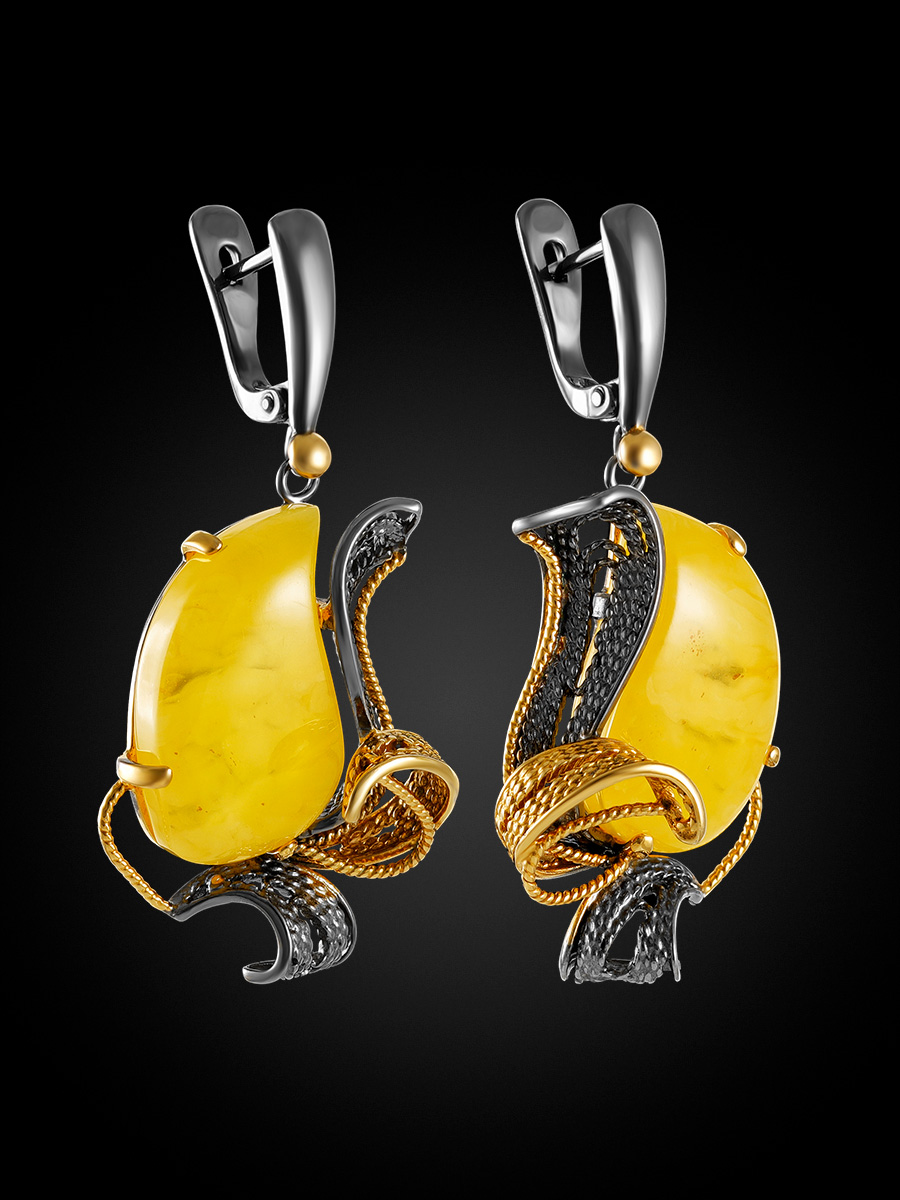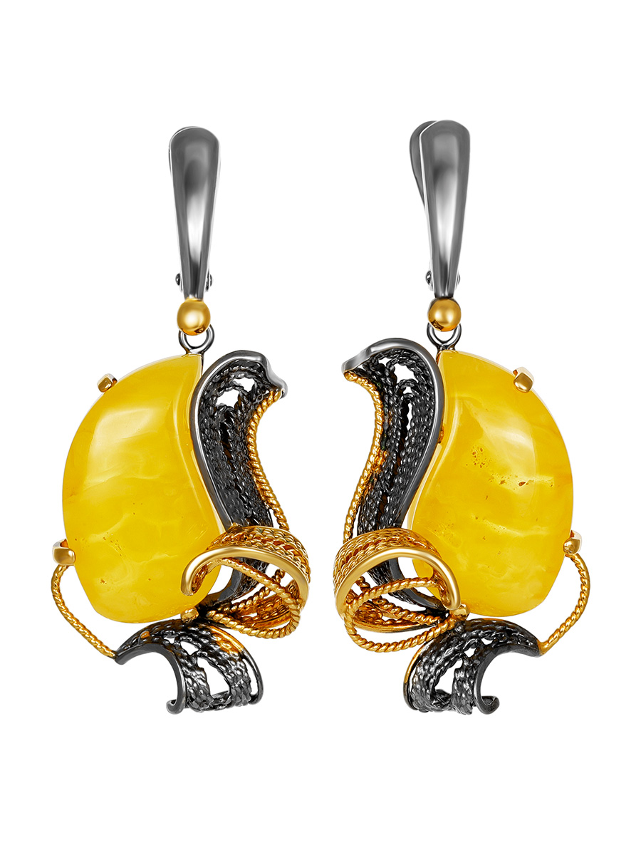 Эффектные серьги из натурального балтийского янтаря «Филигрань»