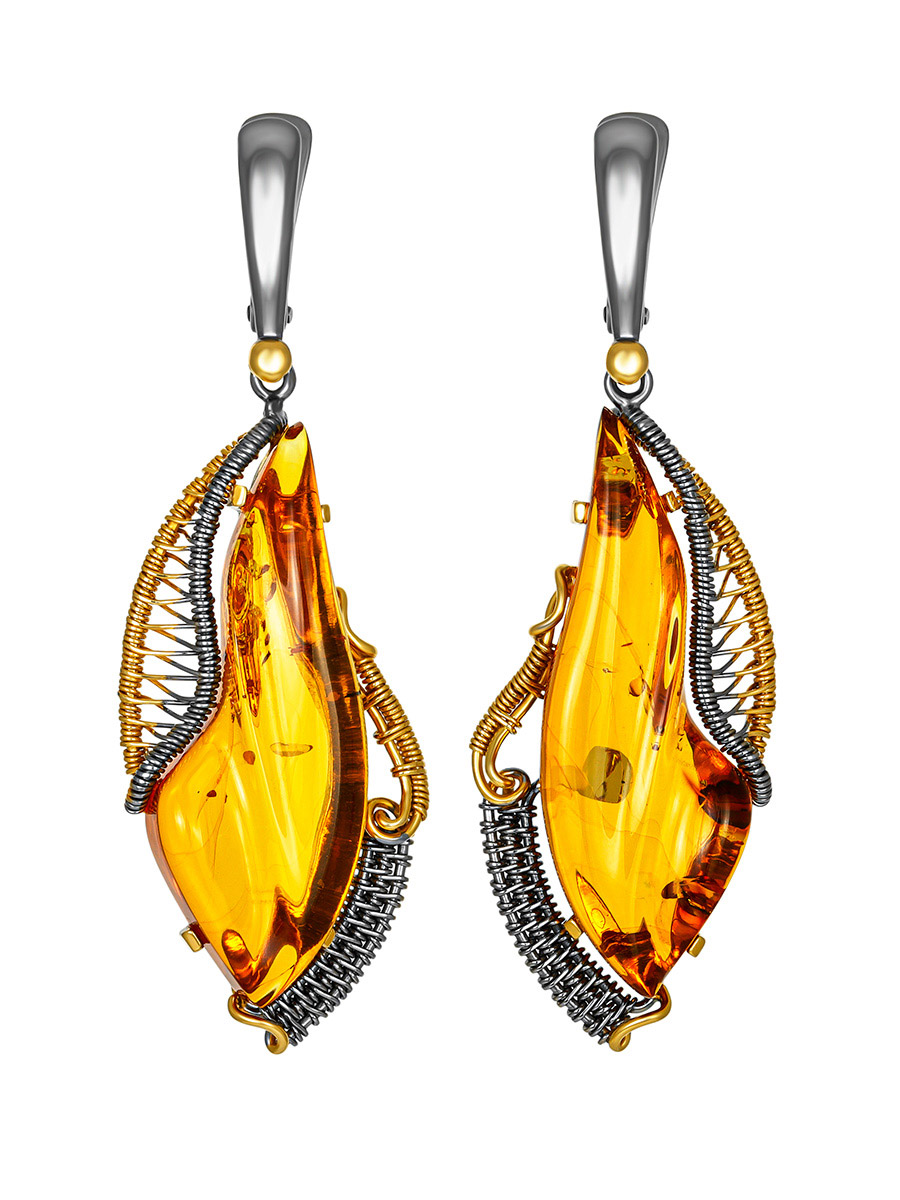 Эффектные серьги из натурального балтийского янтаря «Филигрань»