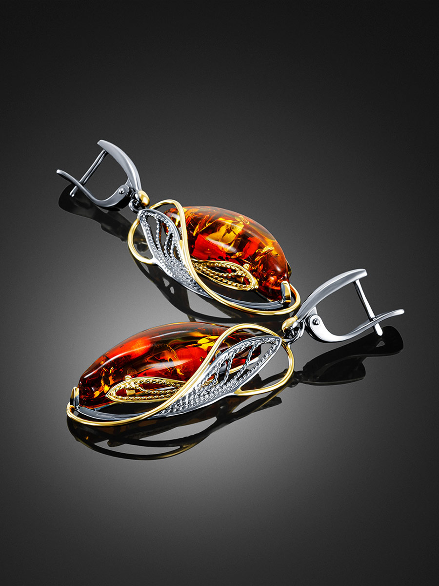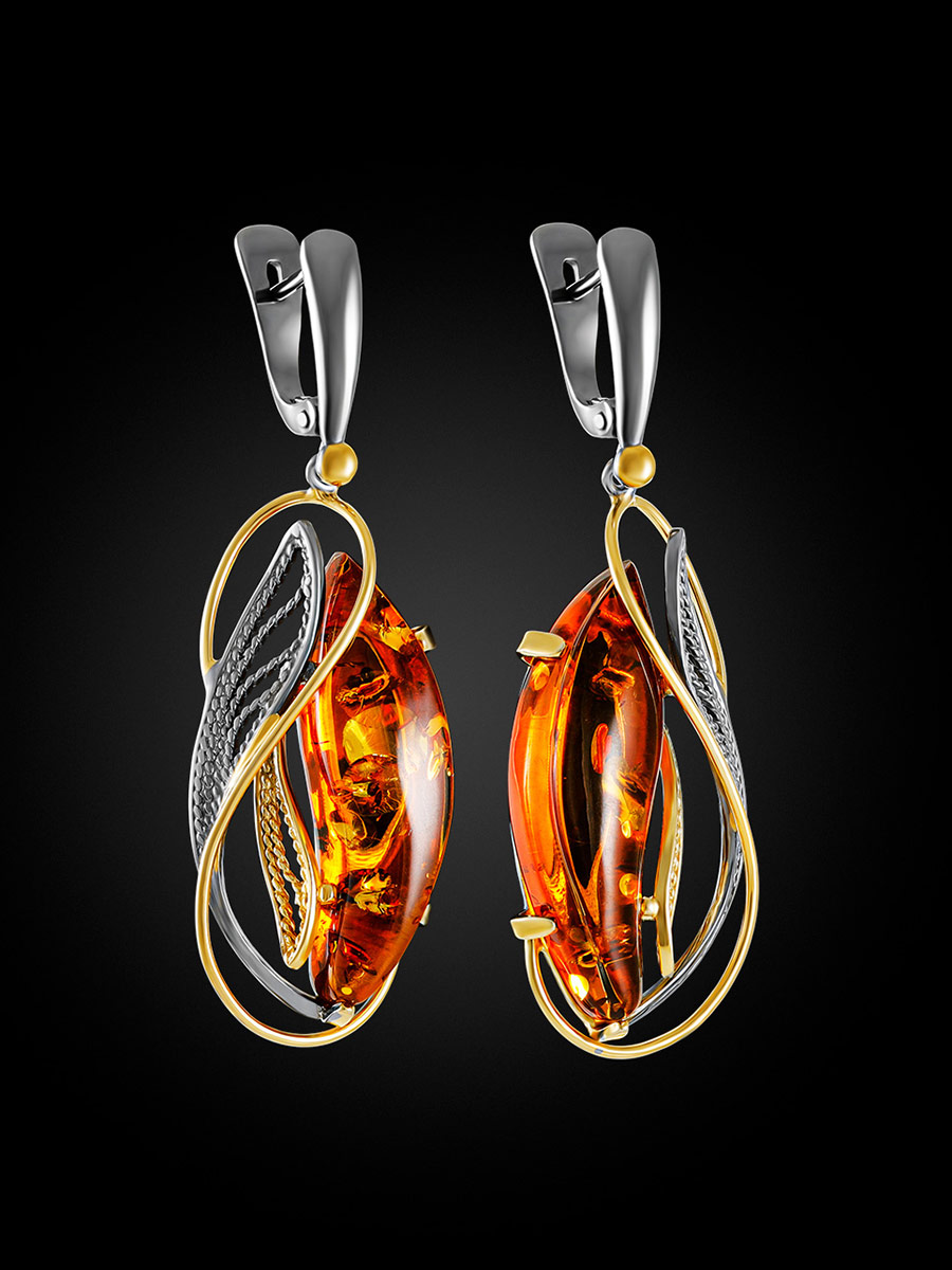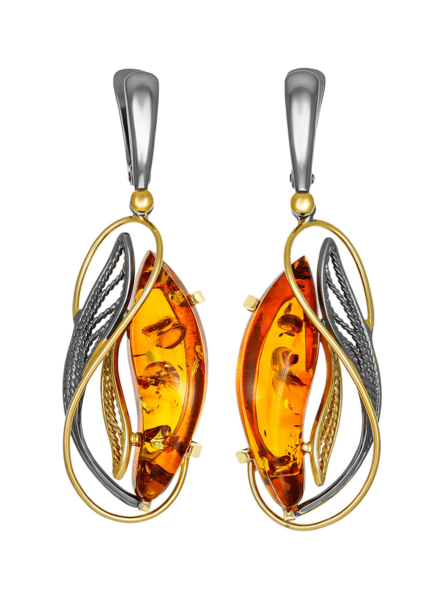 Эффектные серьги из натурального балтийского янтаря «Филигрань»