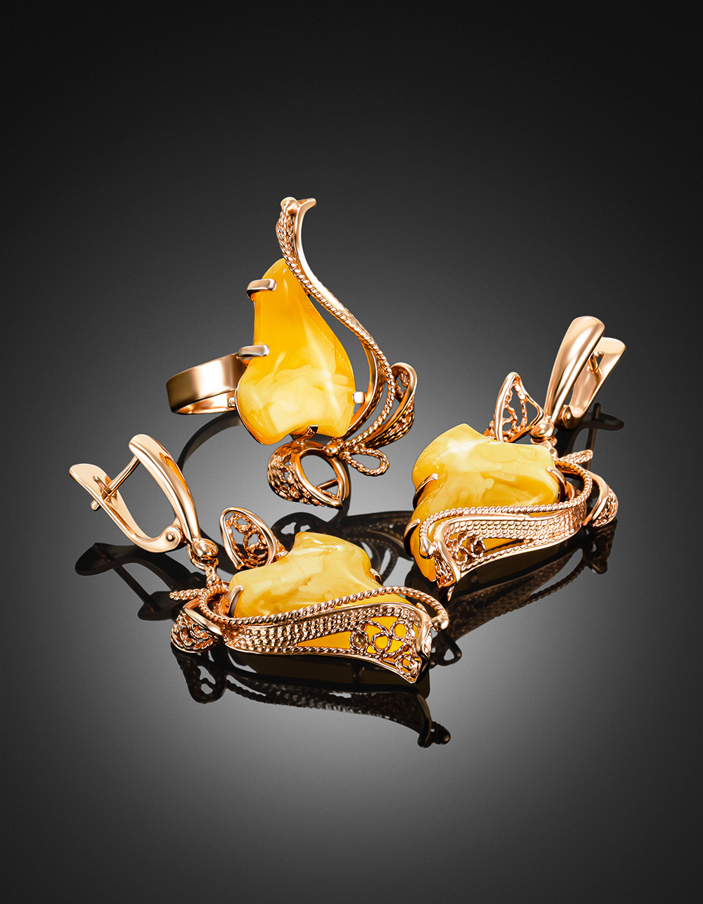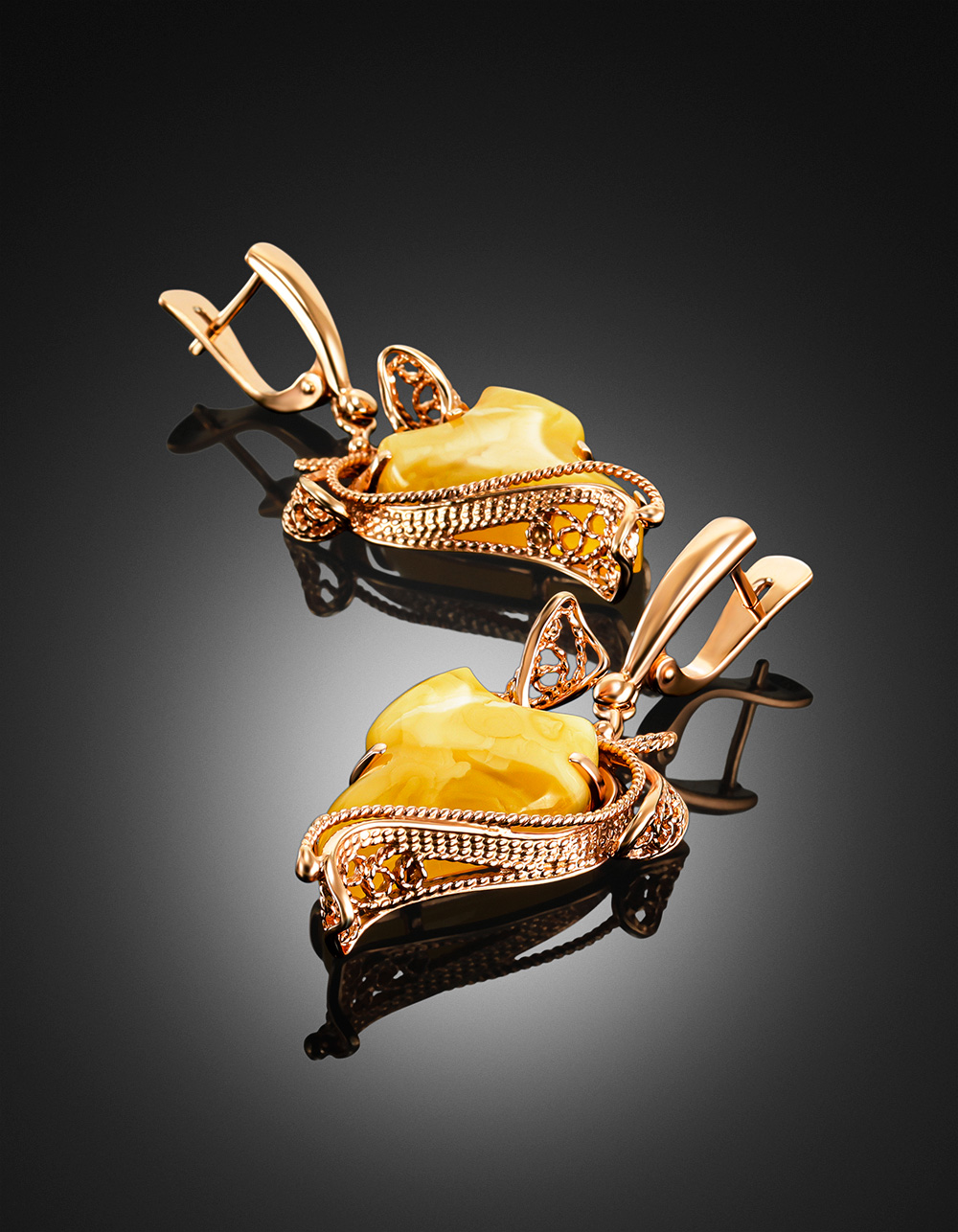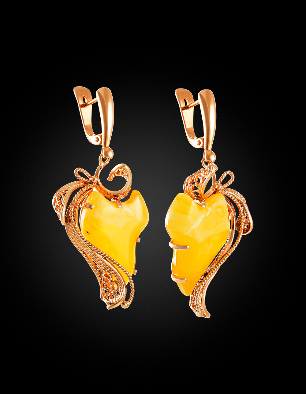 Эффектные серьги из натурального балтийского янтаря «Филигрань»