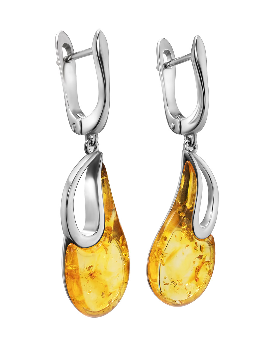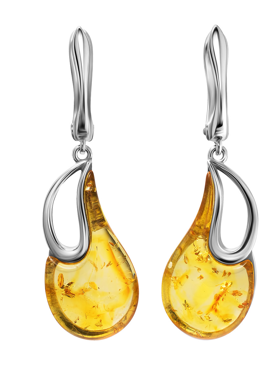Эффектные серьги из натурального лимонного янтаря «Санрайз»