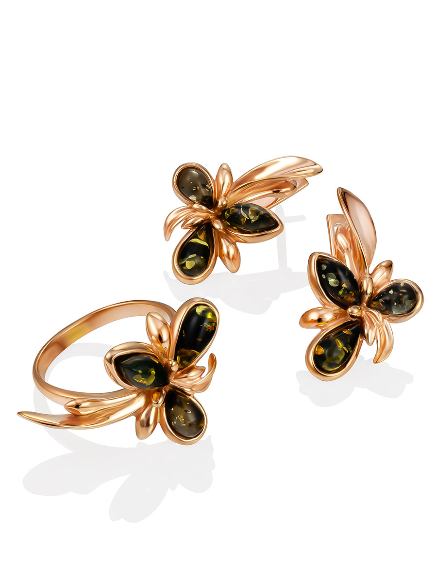 Эффектные серьги «Кипарис» с натуральным зелёным янтарём