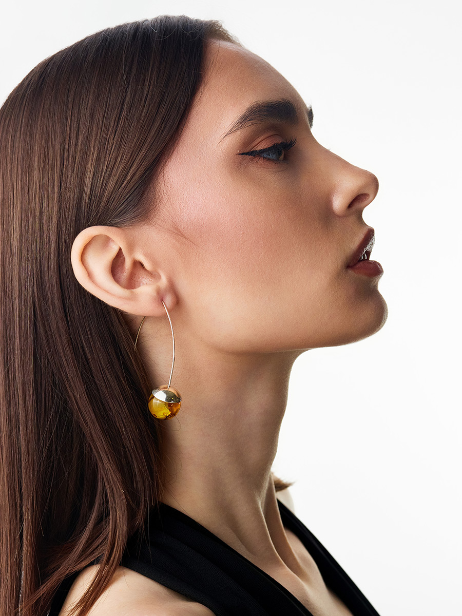 Эффектные серьги-крючки из янтаря с включениями насекомых «Клио»