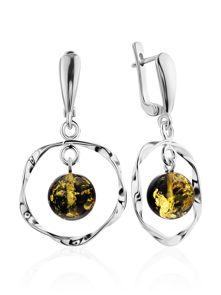 Эффектные серьги «Рапсодия» из янтаря зелёного цвета