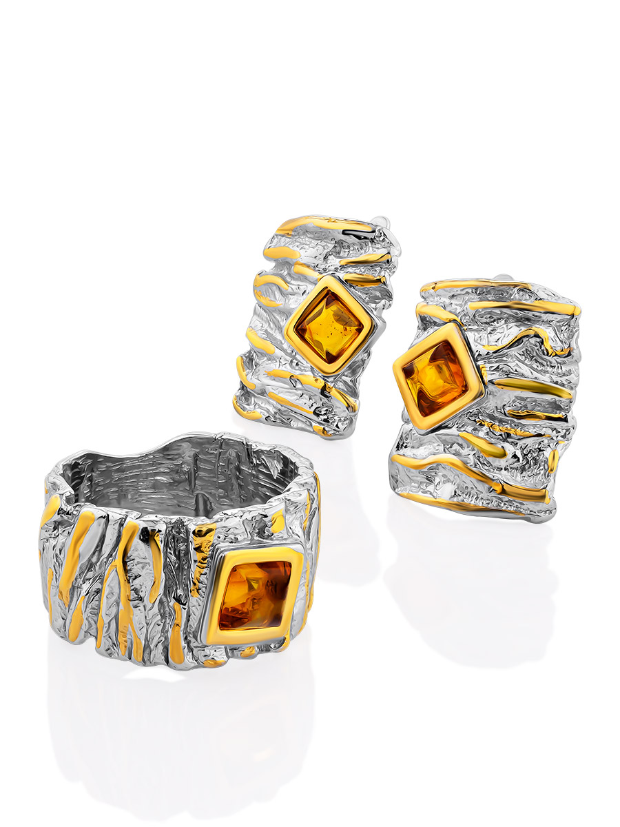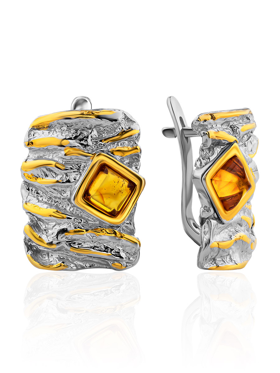 Эффектные серьги с необычной текстурой «Бубинга» из янтаря