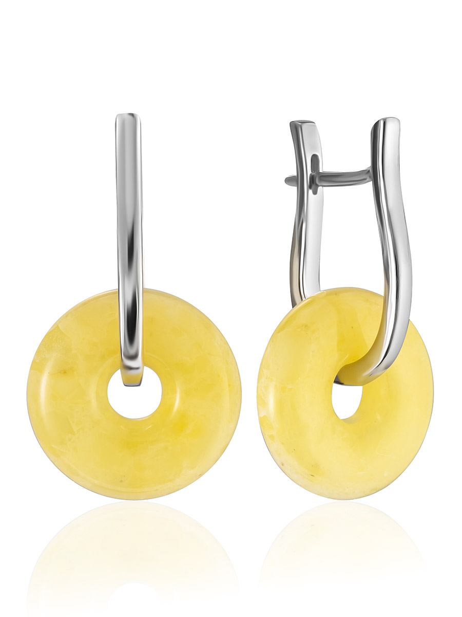 Эффектные серьги с янтарными подвесками-бубликами «Донат»