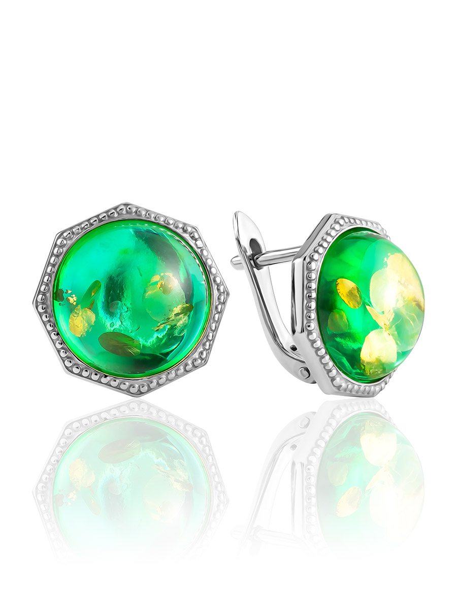 Эффектные серьги «Шахерезада» с изумрудно-зелёным янтарём