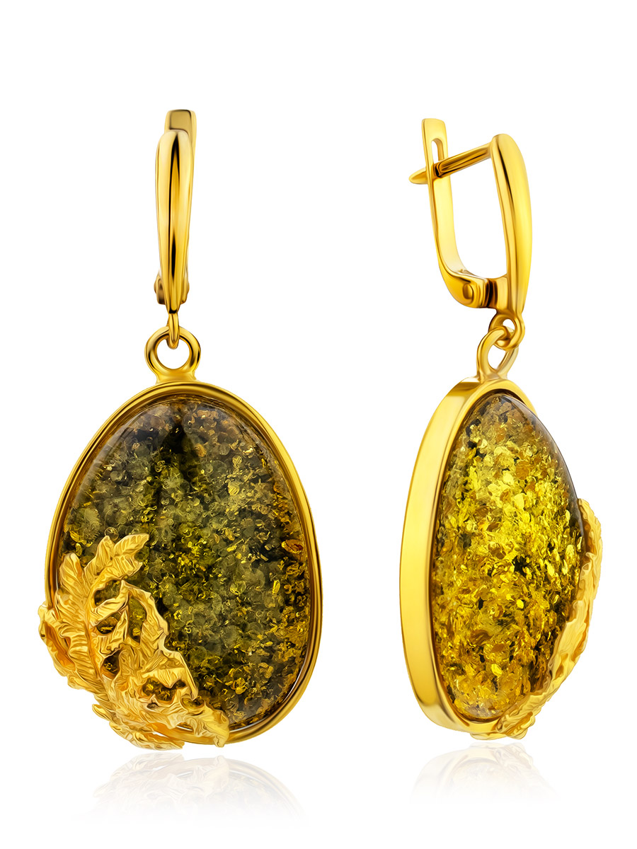 Эффектные серьги «Версаль» с натуральным зелёным янтарём