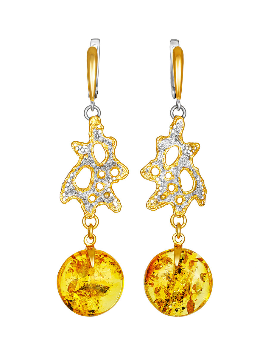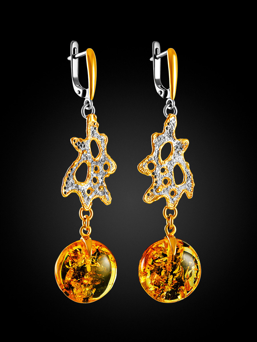 Эффектные удлинённые серьги с натуральным искрящимся янтарём «Версаль»