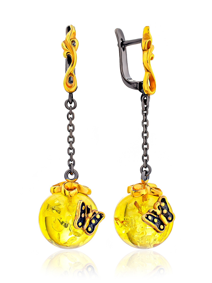 Эффектные яркие серьги из натурального лимонного янтаря «Сен Жермен»