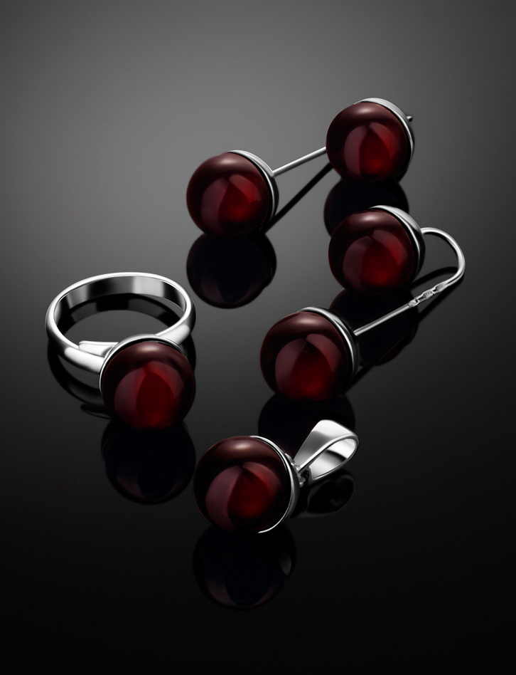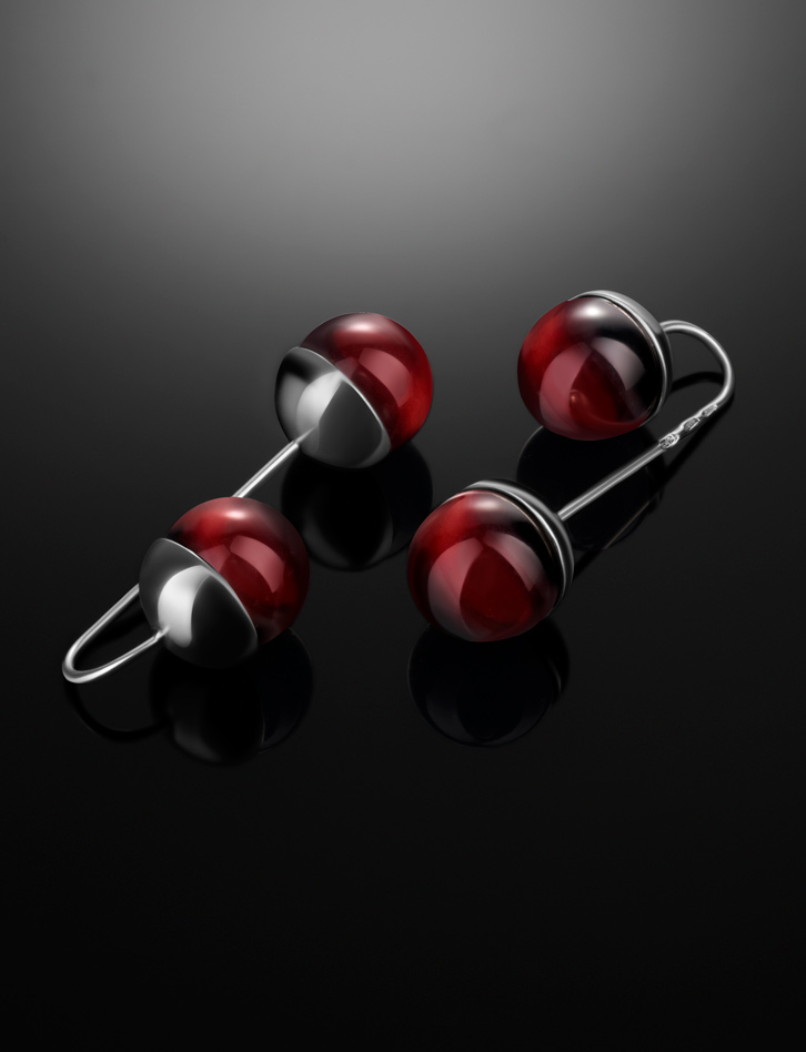 Эффектные яркие серьги из тёмно-вишнёвого янтаря «Пигаль»