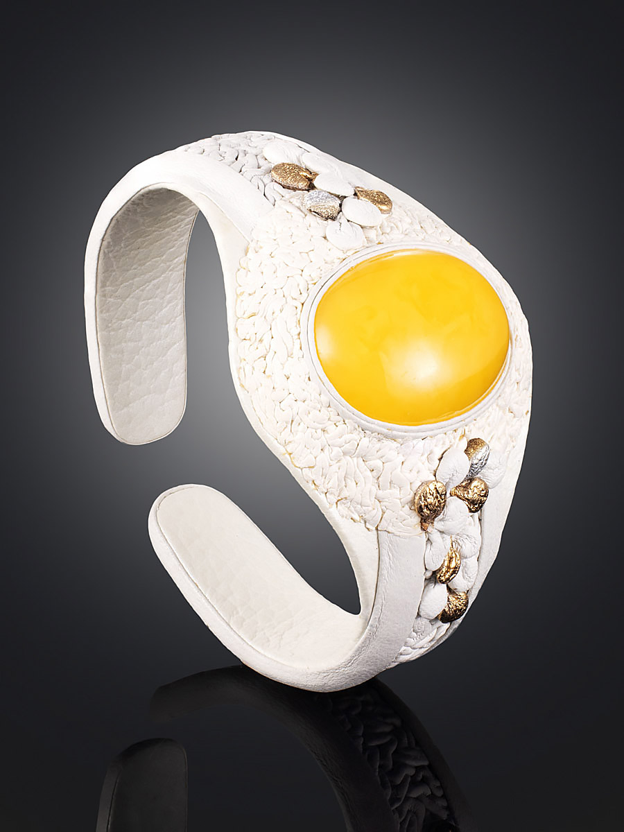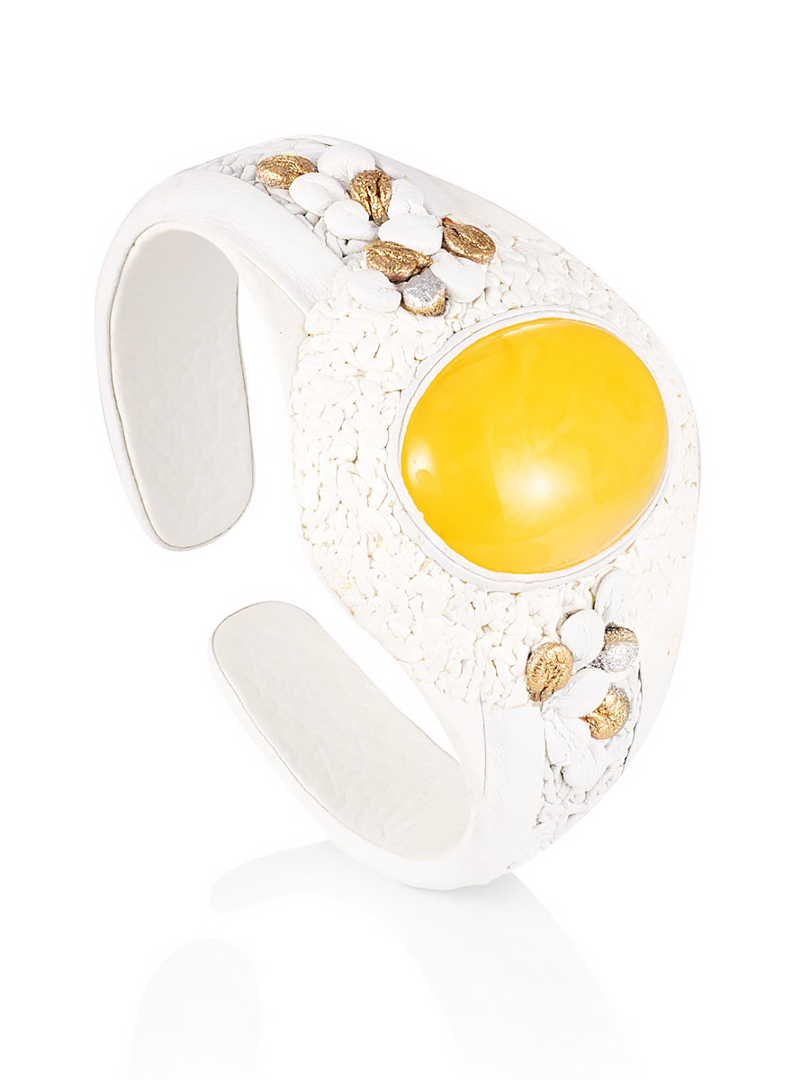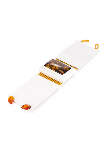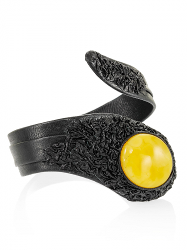 Эффектный браслет из натуральной кожи с янтарём насыщенного медового цвета «Нефертити»