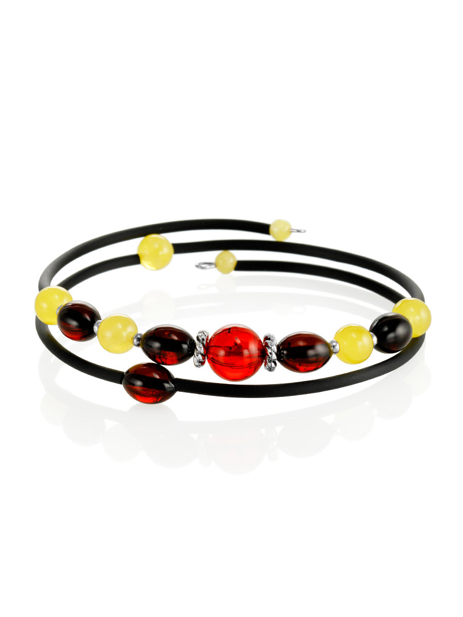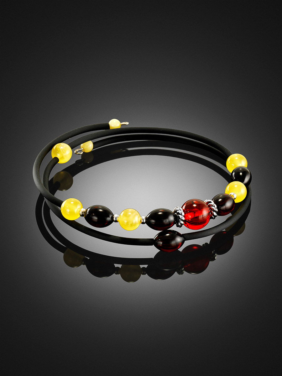 Эффектный браслет на струне с натуральным янтарём «Оклахома»