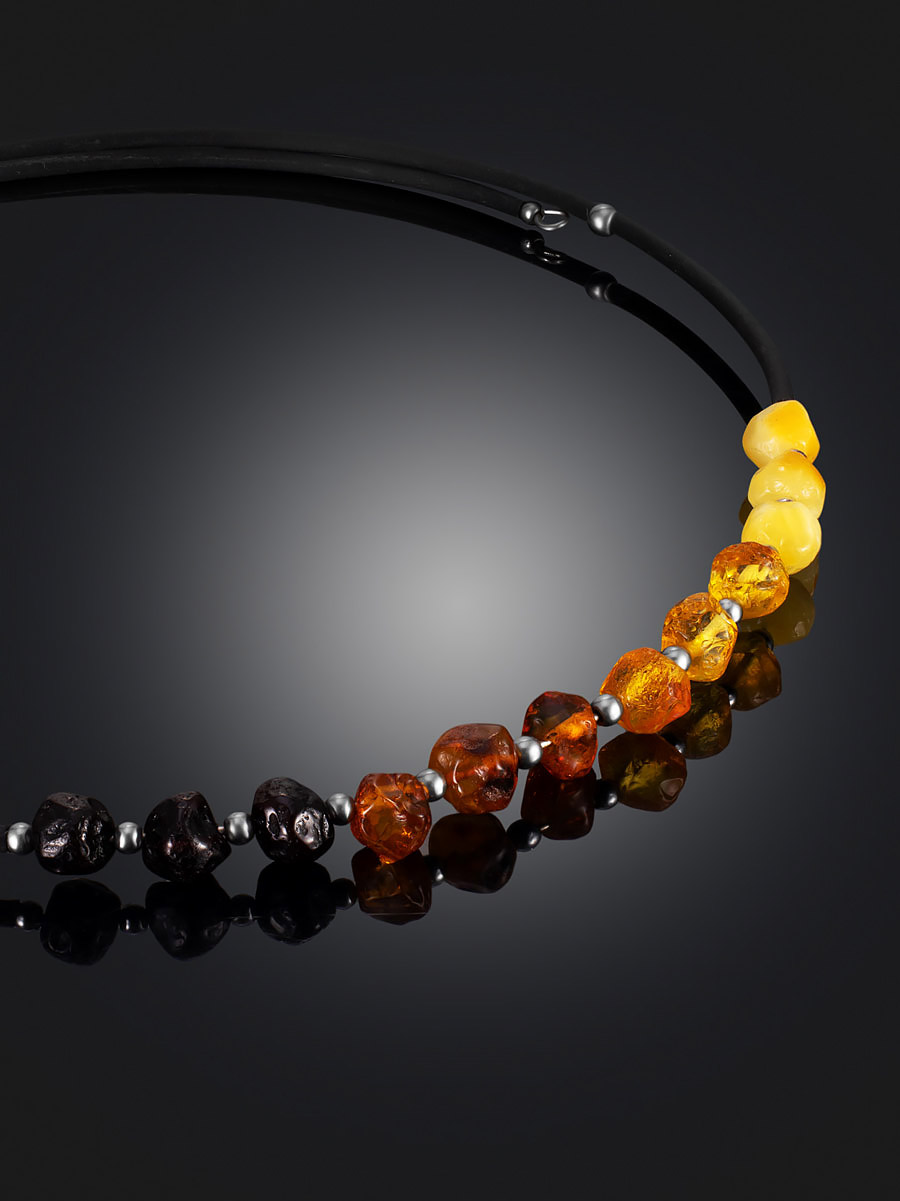 Эффектный чокер-обруч с янтарём разных оттенков «Оклахома градиент»