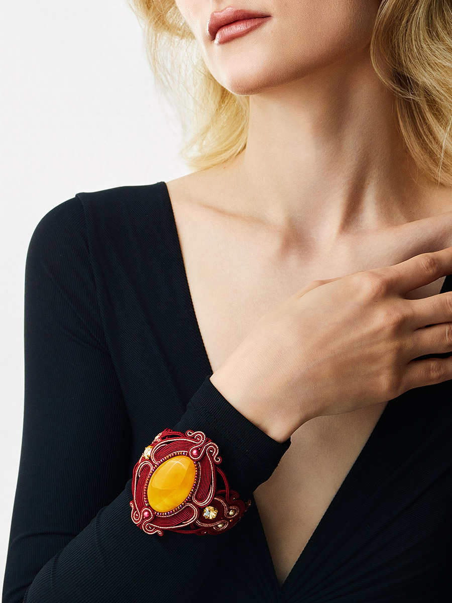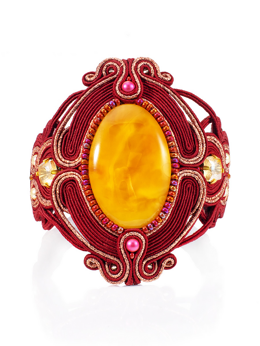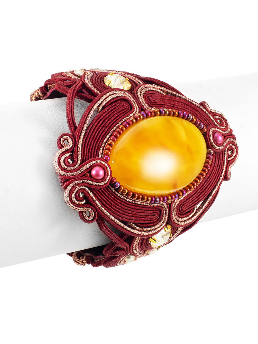 Эффектный плетёный браслет «Индия» с натуральным янтарём, украшенный кристаллами и бисером