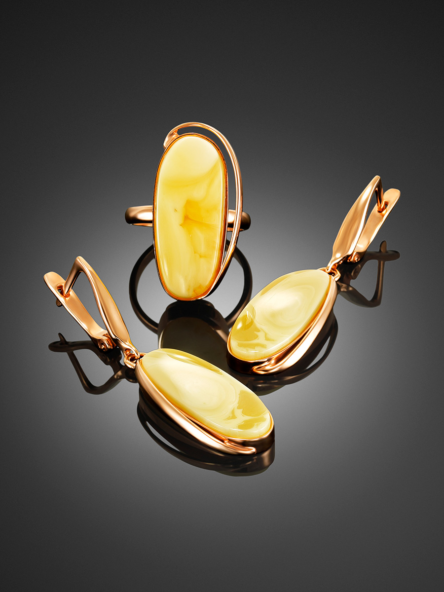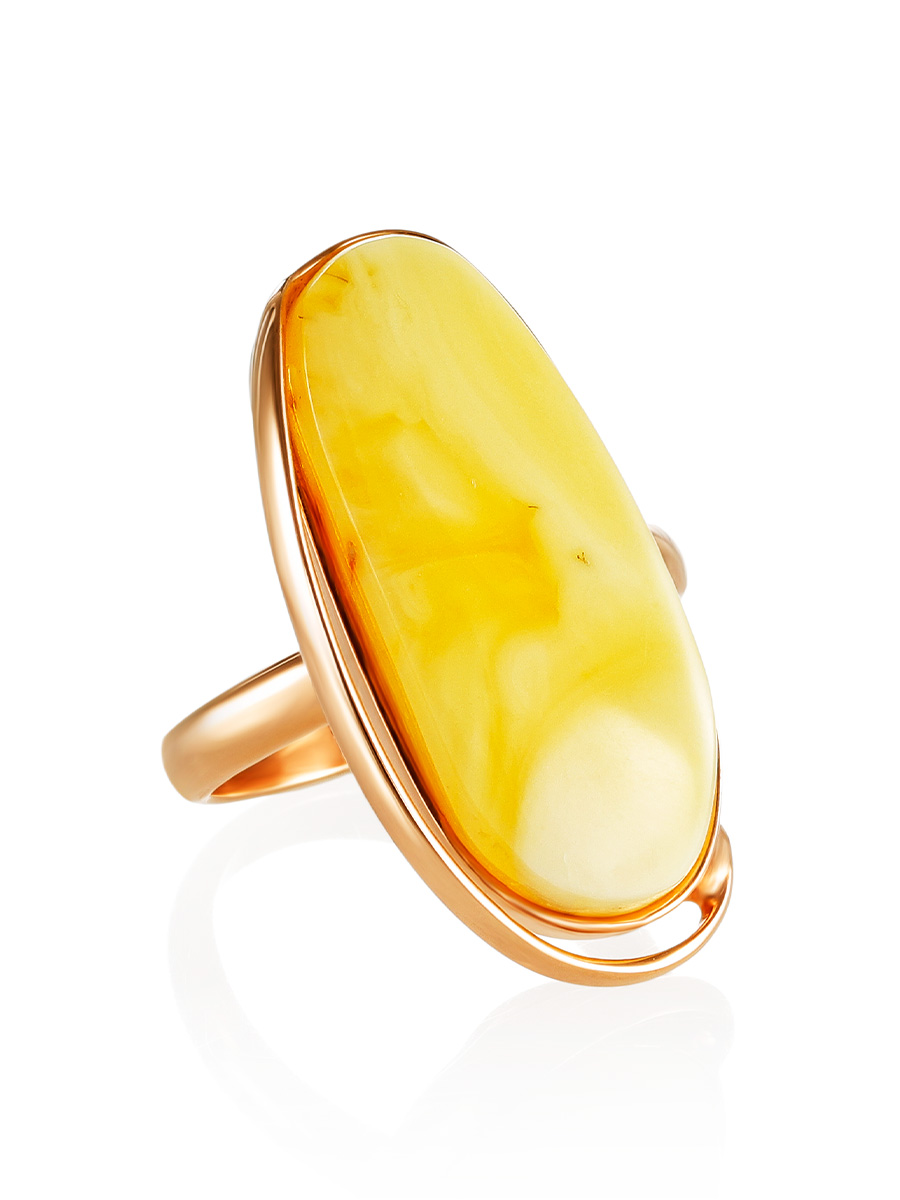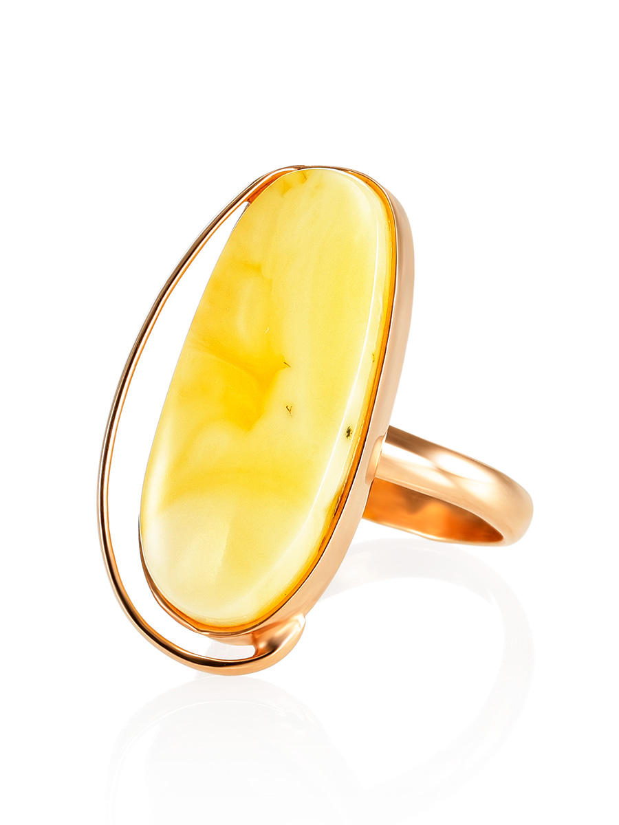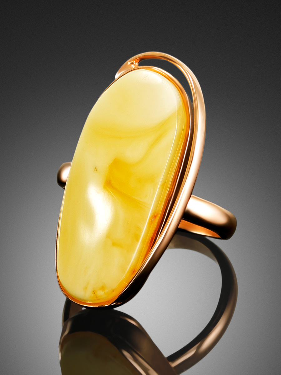 Эксклюзивное кольцо из золочённого серебра с натуральным медовым янтарём «Лагуна»