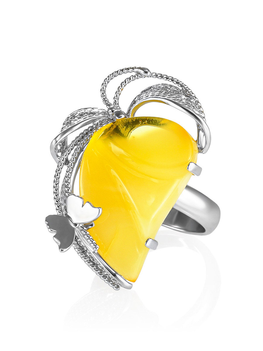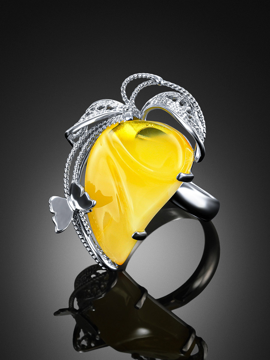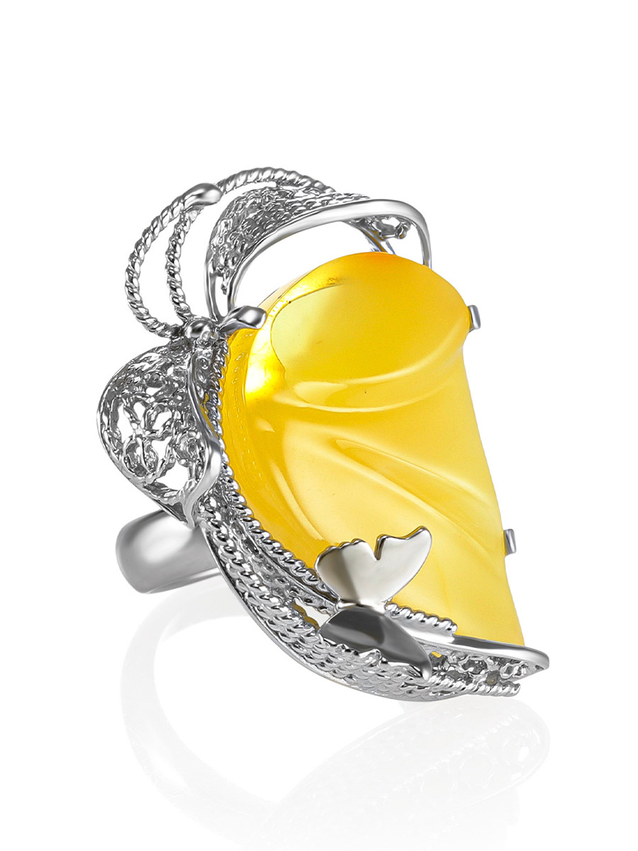 Эксклюзивное кольцо с натуральным янтарём «Филигрань»