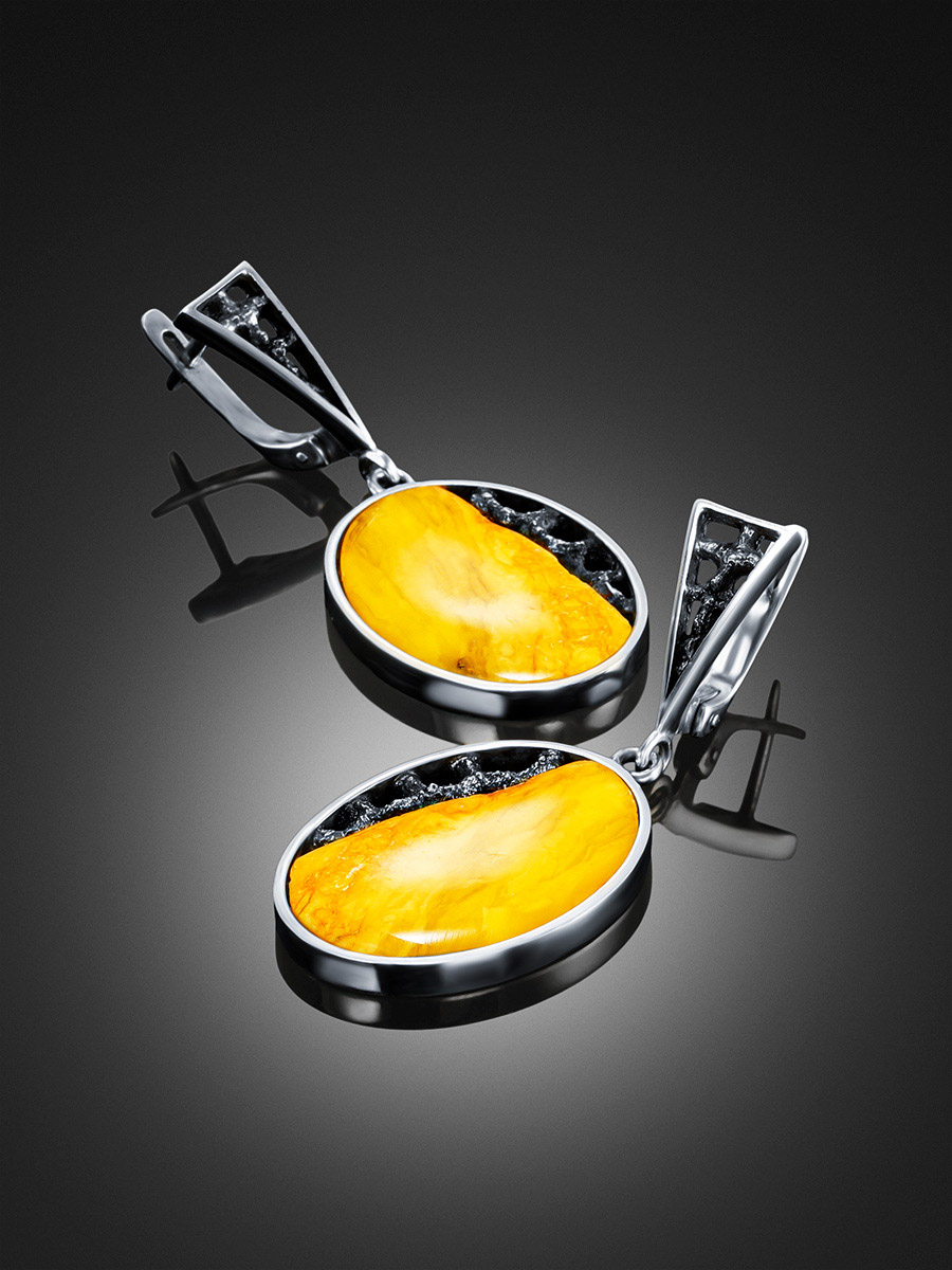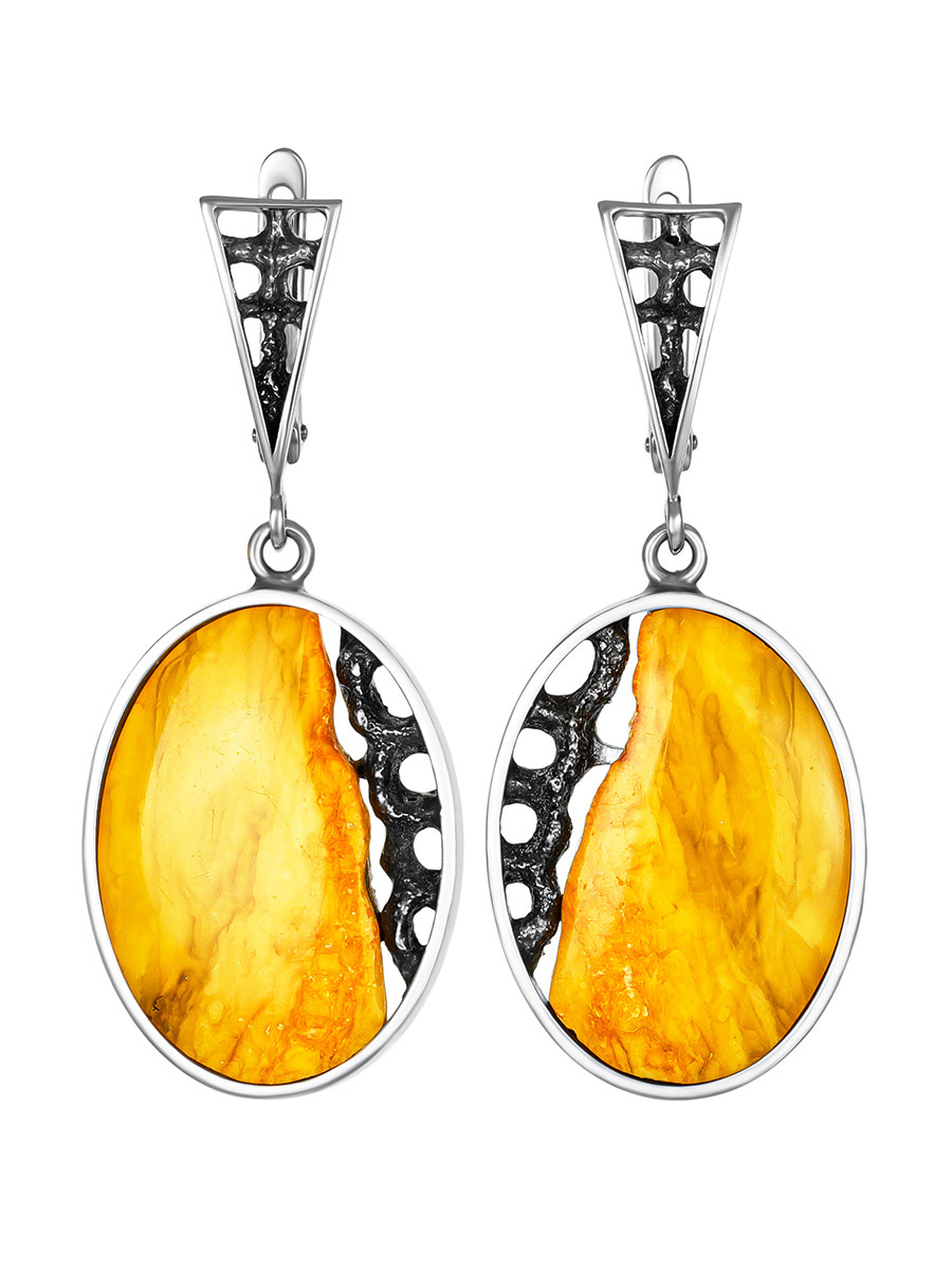 Эксклюзивные серьги «Модерн» со вставками текстурированного медового янтаря