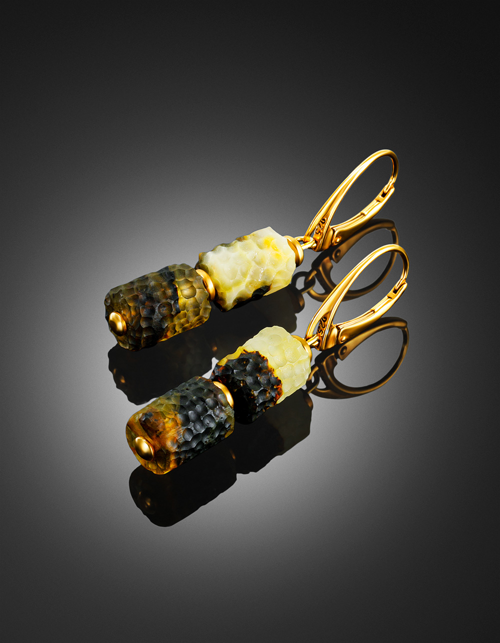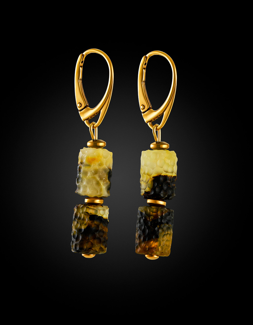 Эксклюзивные серьги с янтарными цилиндрами «Марс»