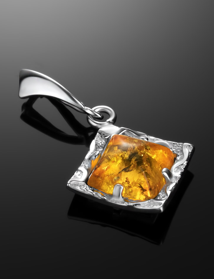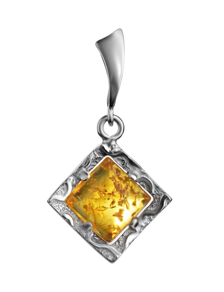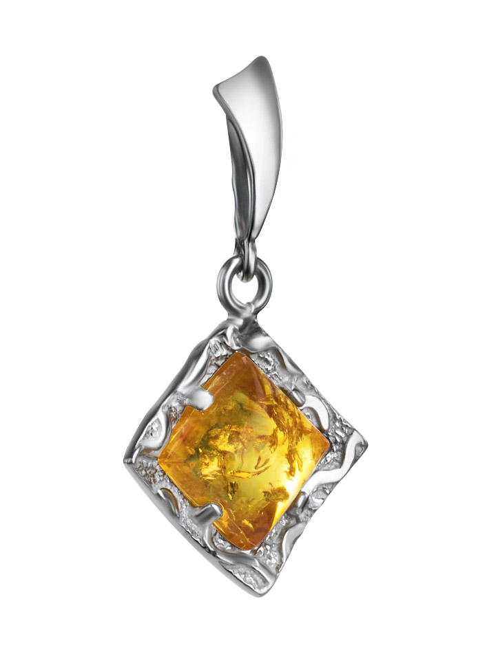 Элегантная подвеска с натуральным золотисто-лимонным янтарём «Авангард»
