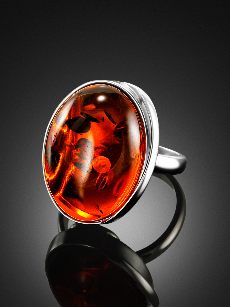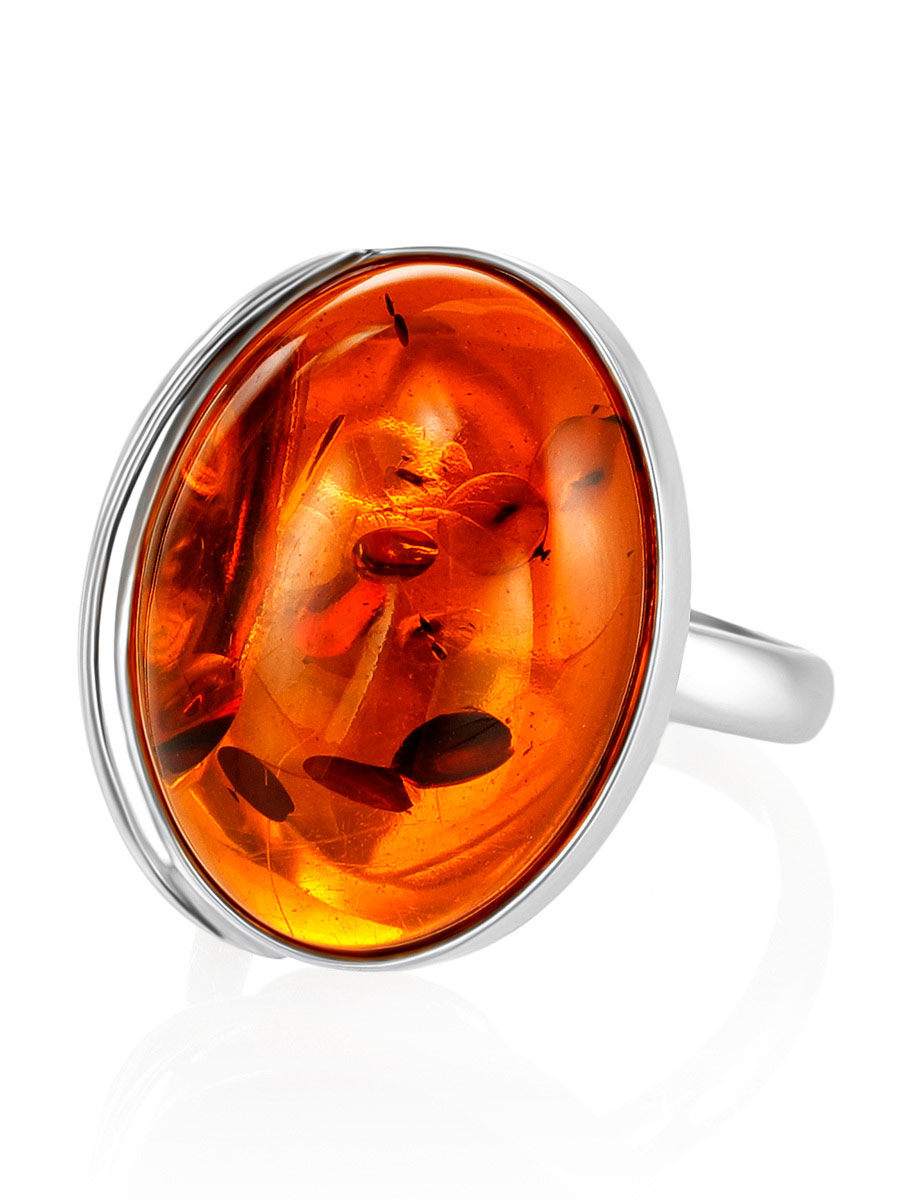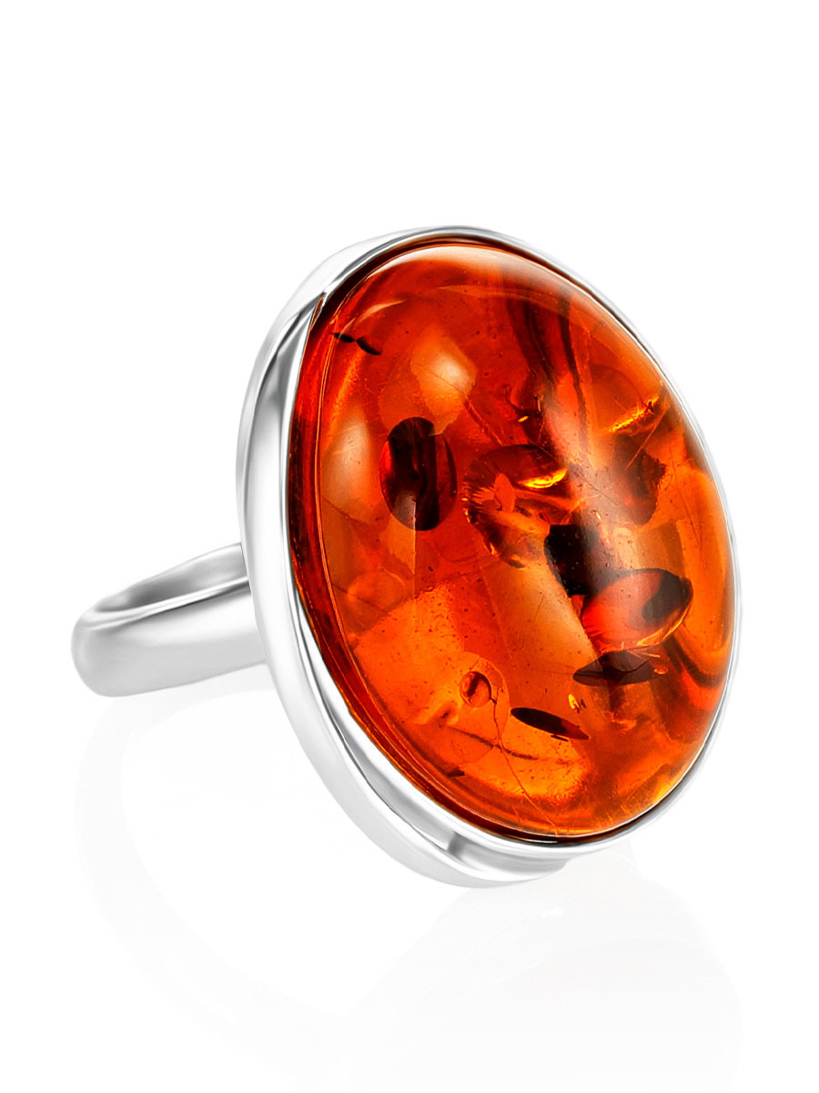 Элегантное кольцо «Глянец» со вставкой из натурального коньячного янтаря