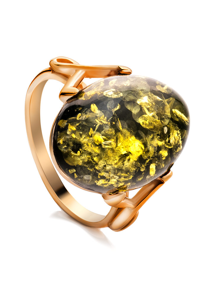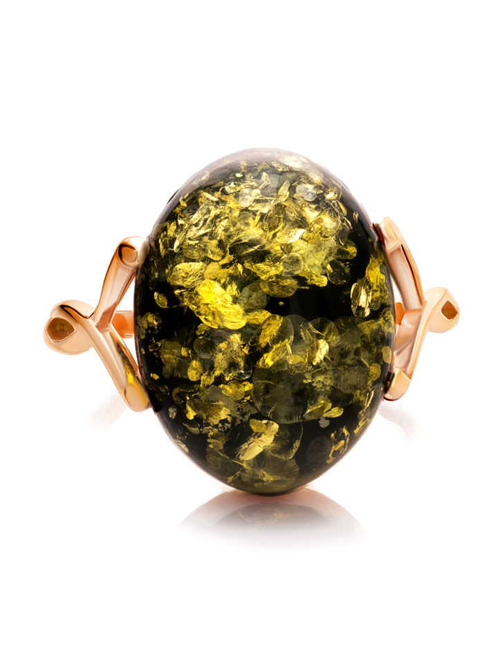 Элегантное кольцо «Неаполь» из янтаря зелёного цвета