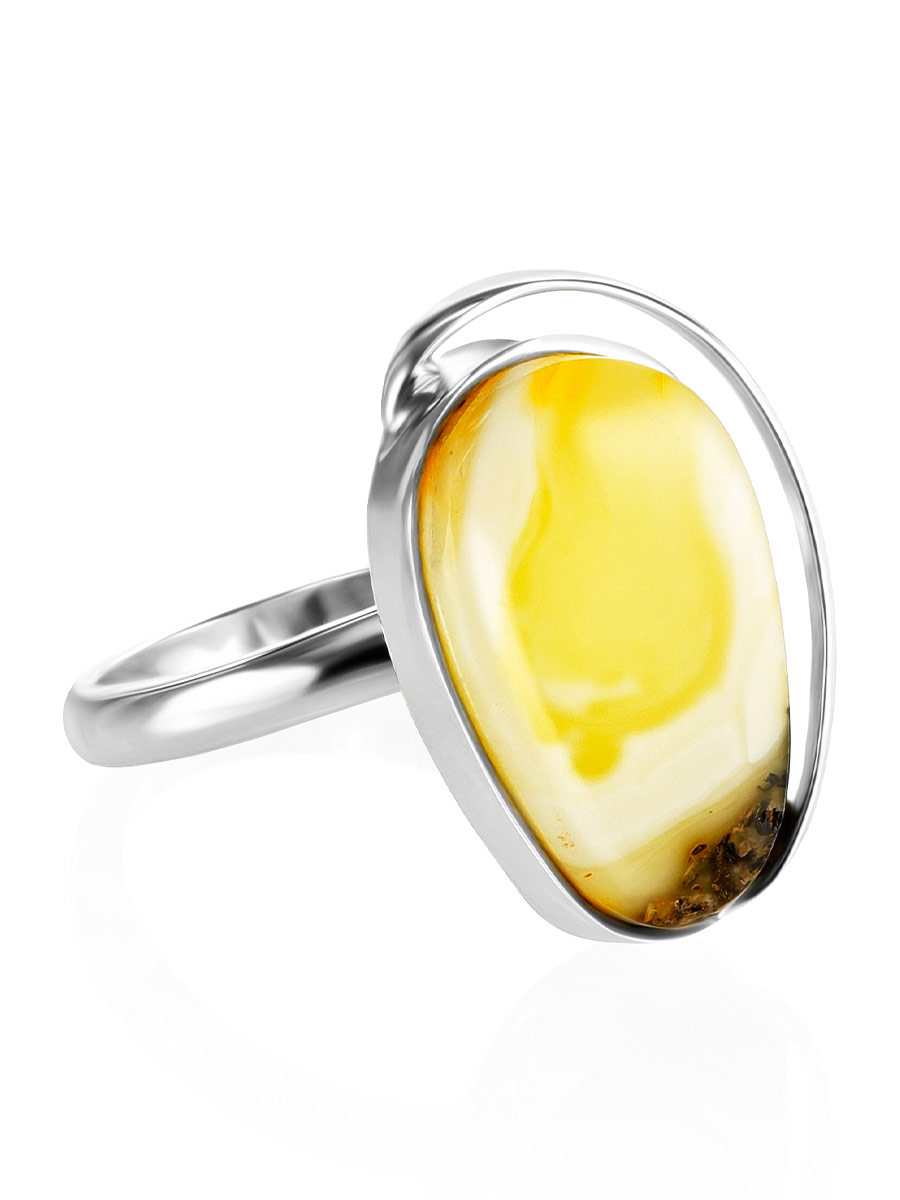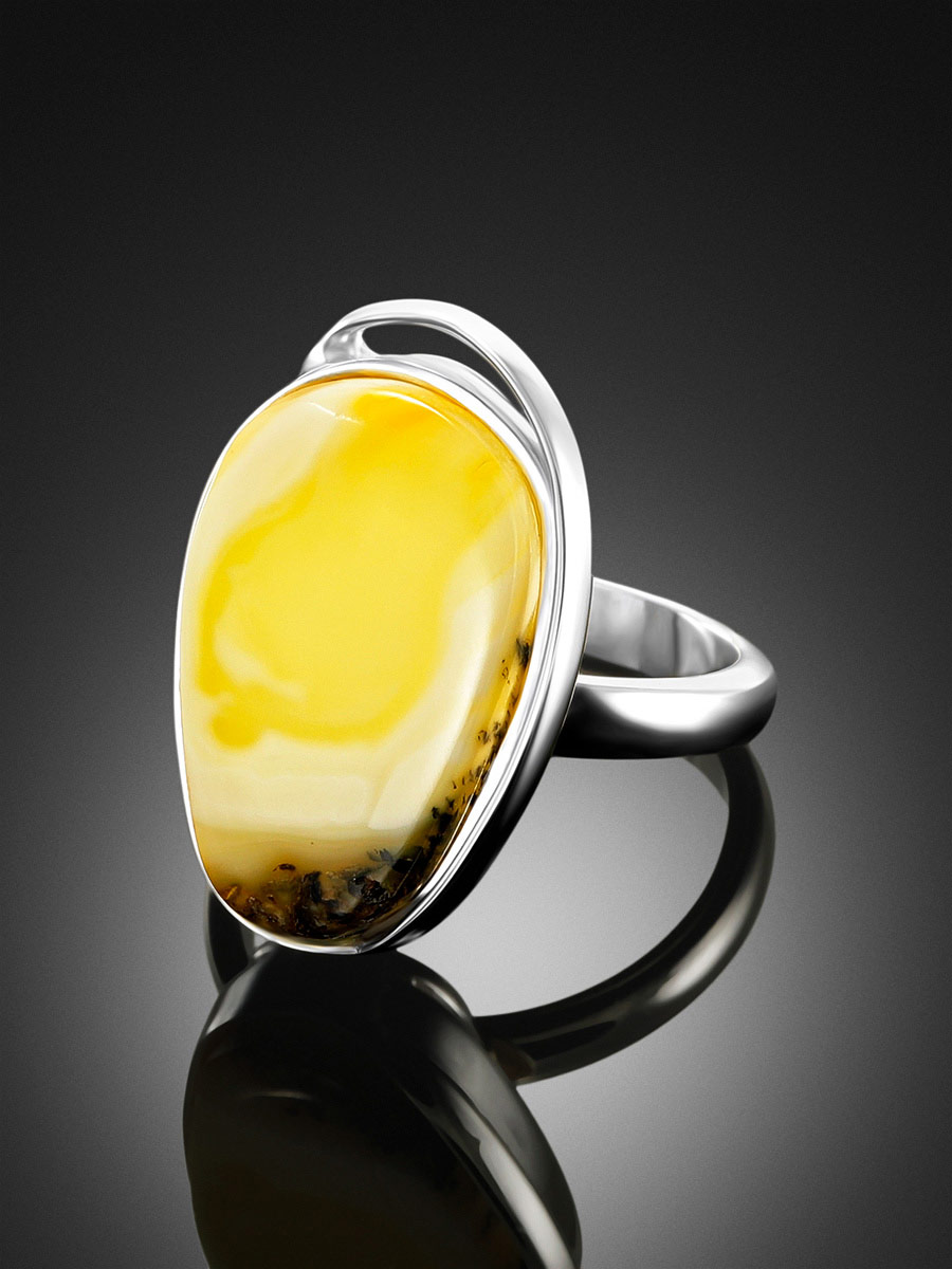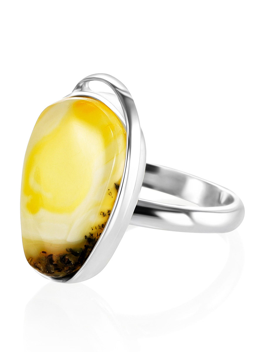 Элегантное кольцо с натуральным янтарём медового цвета «Лагуна»