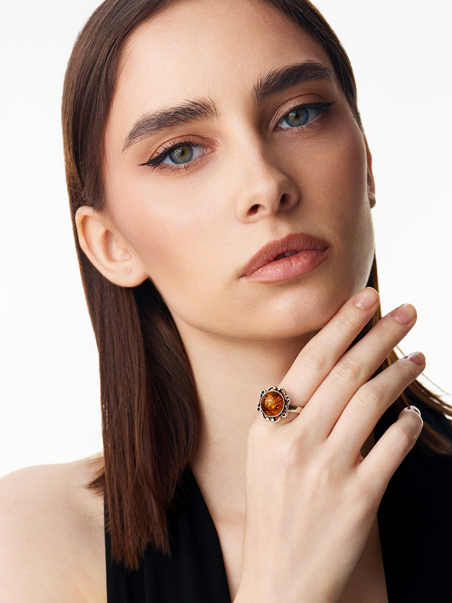 Элегантное кольцо «Винтаж» из натурального балтийского янтаря