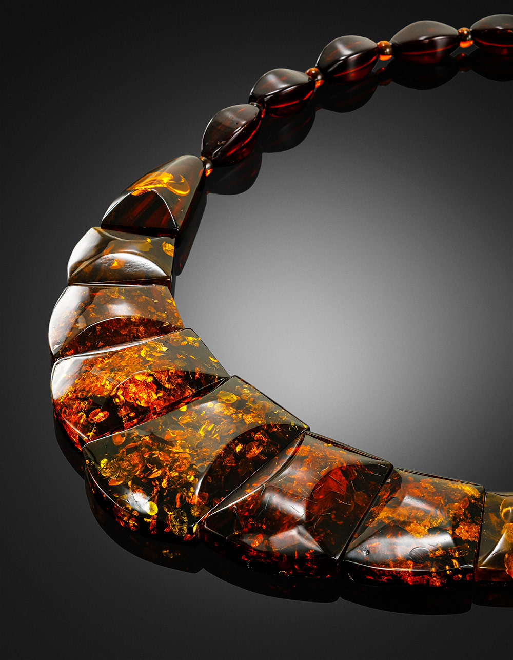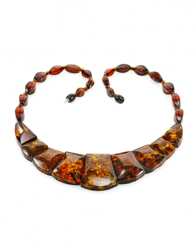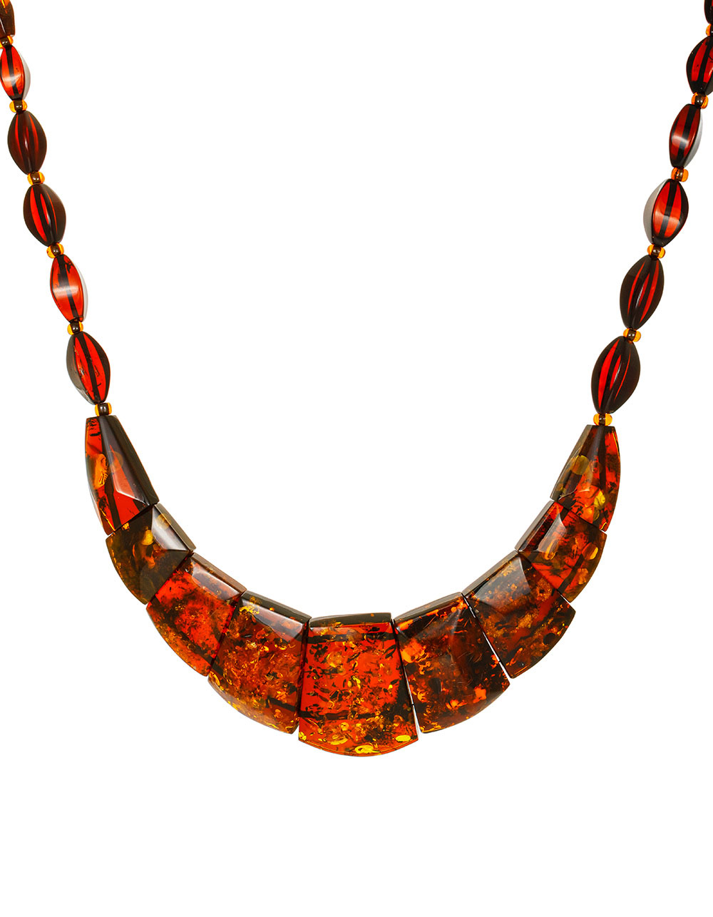 Элегантное колье из янтаря вишнёвого цвета с искрами «Аркада»