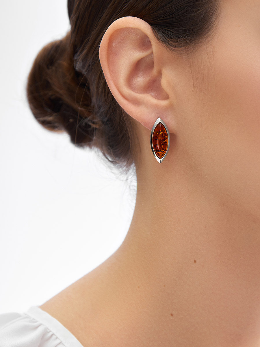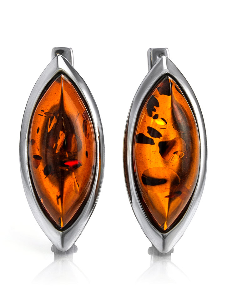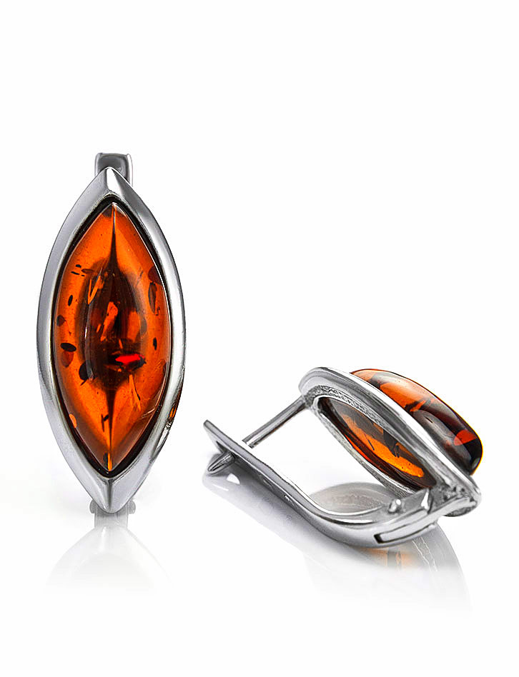 Элегантные серьги из янтаря коньячного цвета «Амарант крупный»