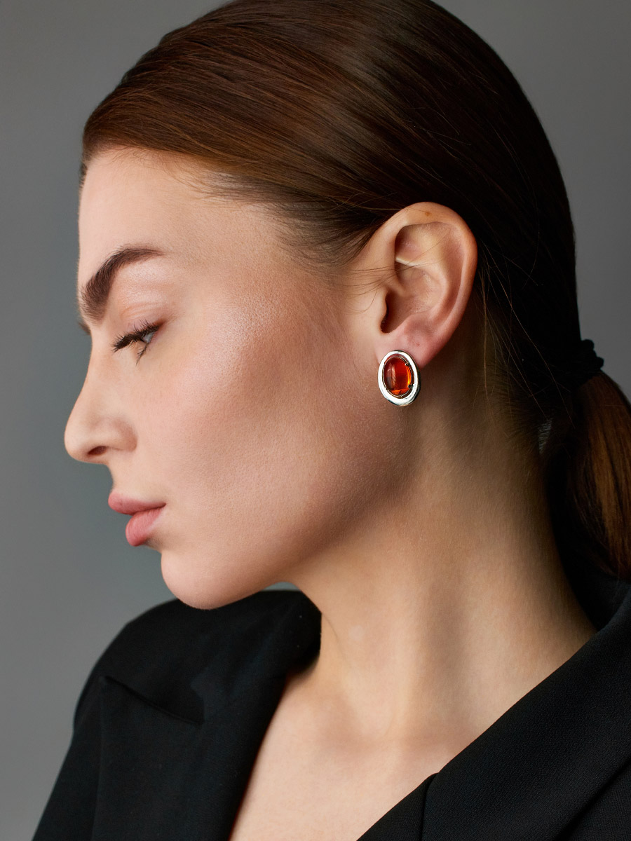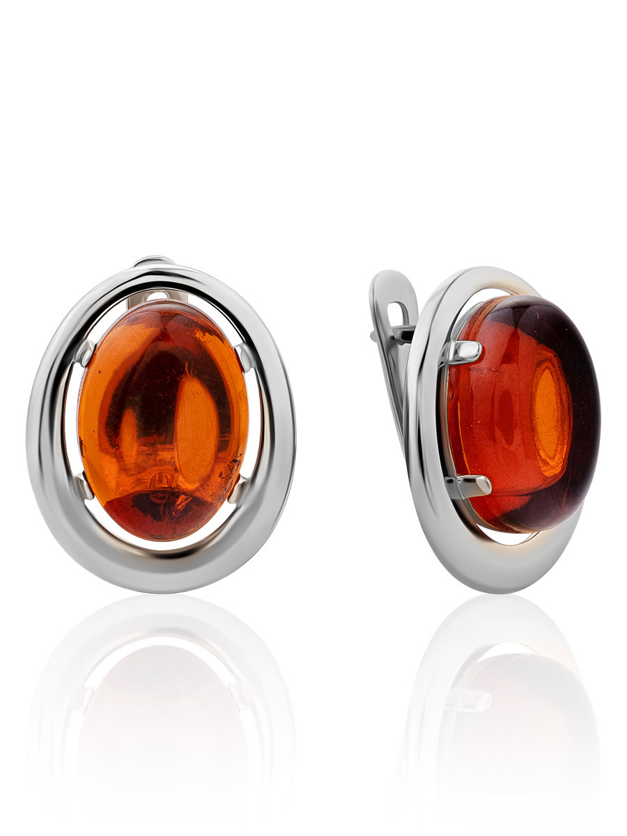 Элегантные серьги «Сонет» с янтарём коньячного цвета