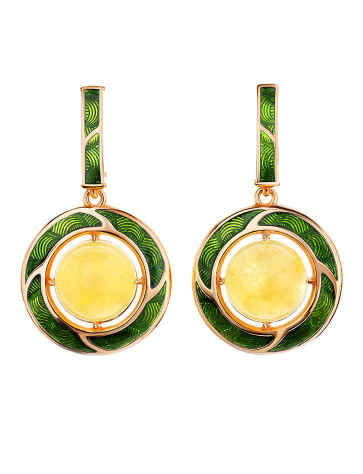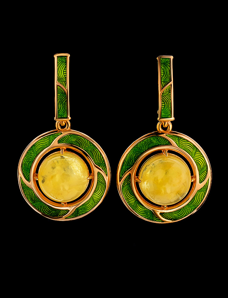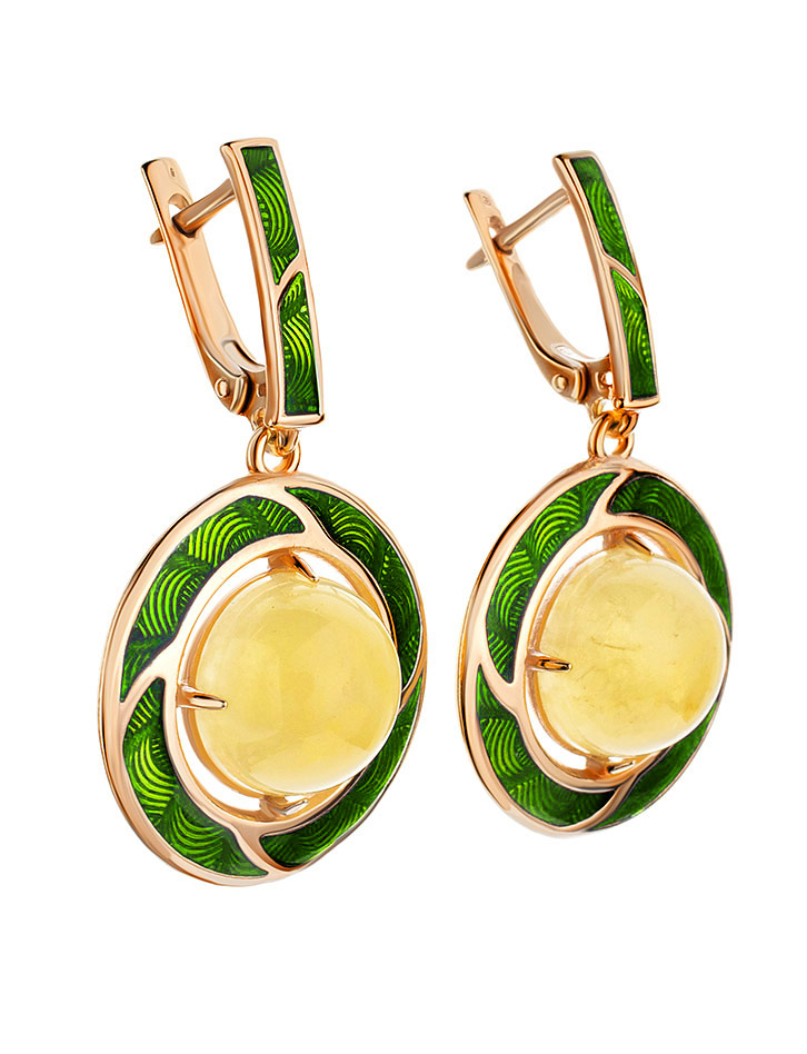 Элегантные серьги, украшенные эмалью и медовым янтарём «Ампир»