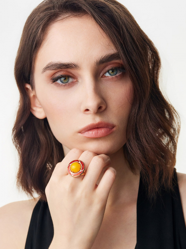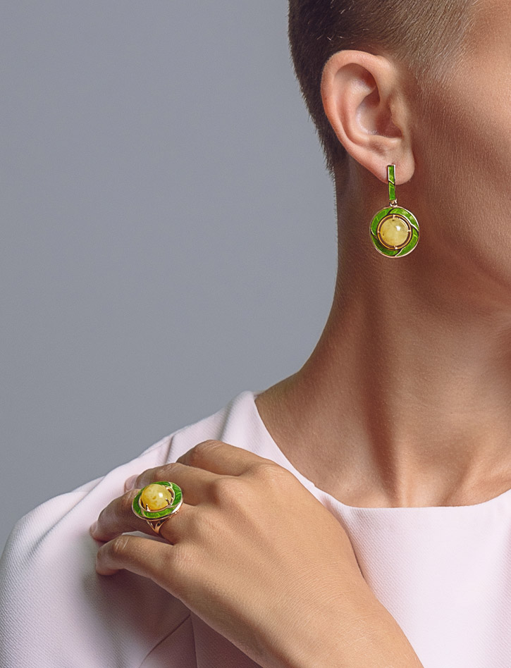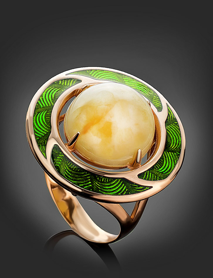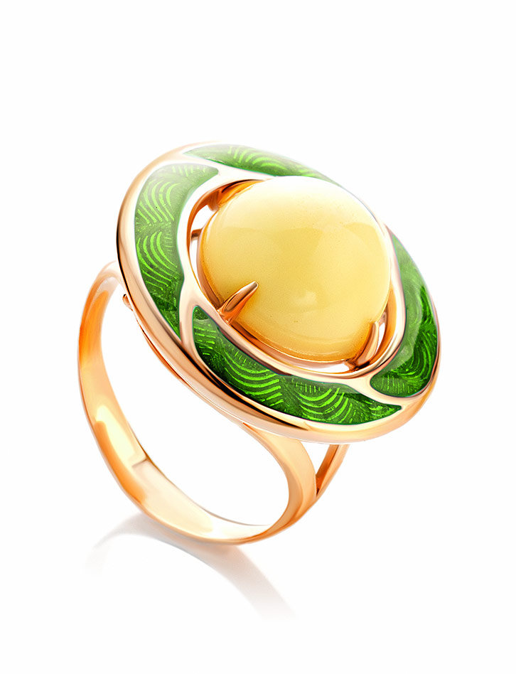 Эмалевое кольцо «Ампир» с янтарём медового цвета