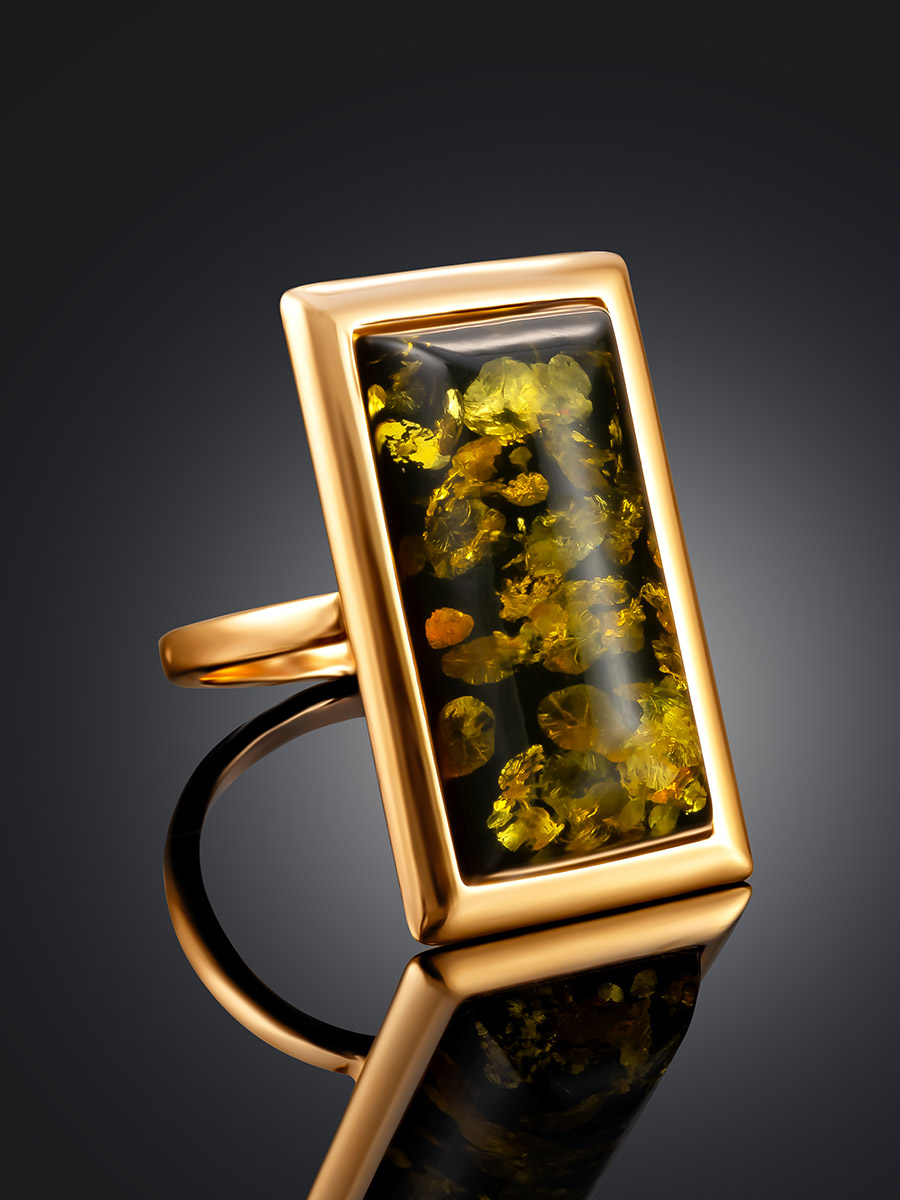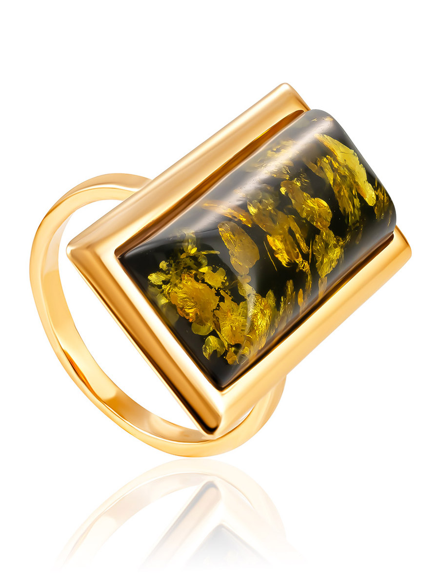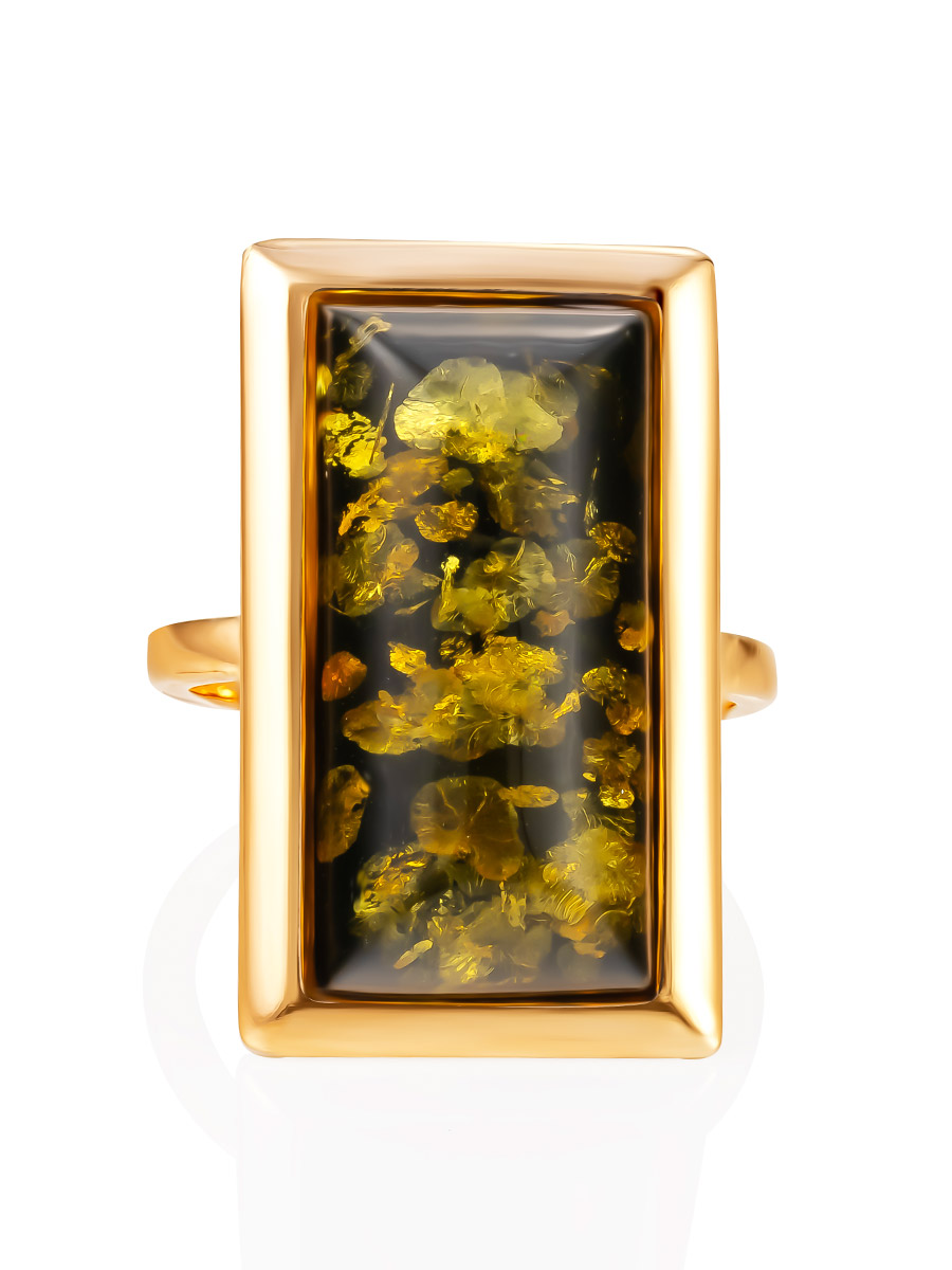 Геометрическое кольцо с натуральным зелёным янтарём «Челси»