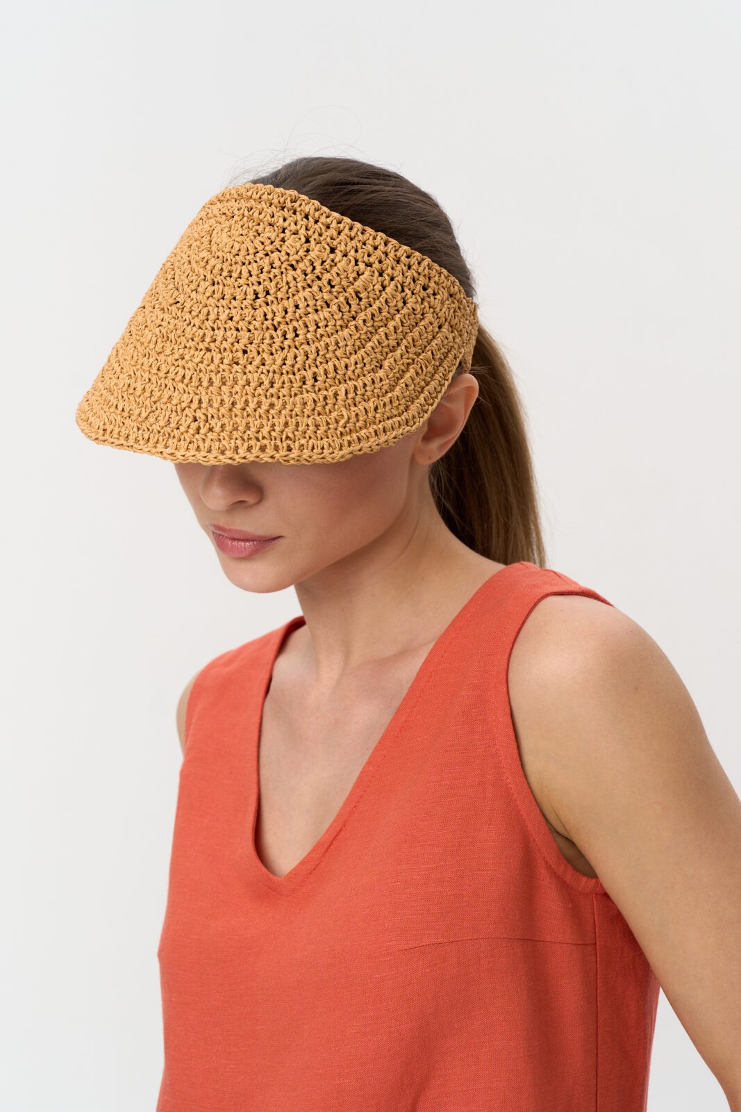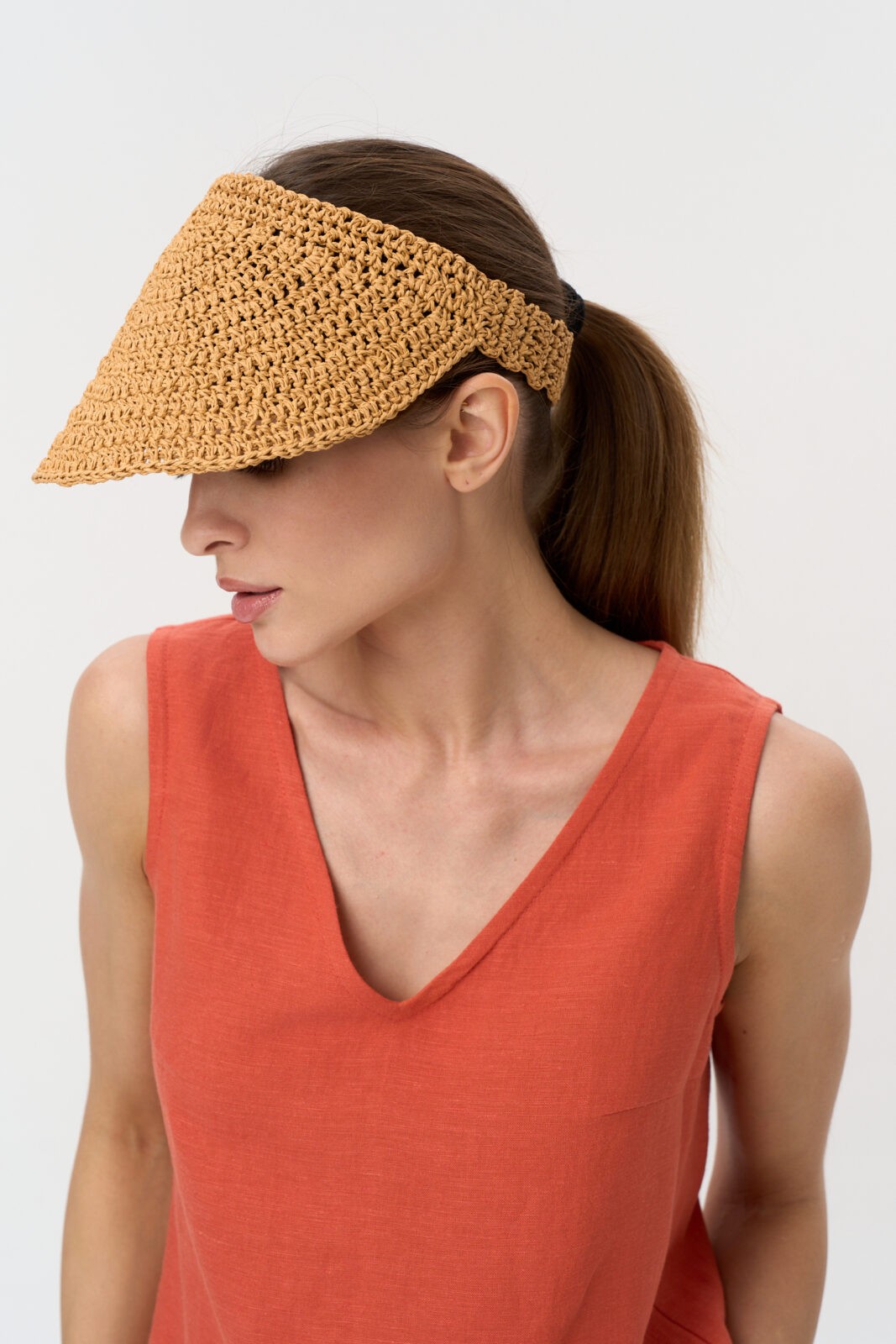 Козырек плетеный из рафии. Размер: 54-57. Ручная работа
