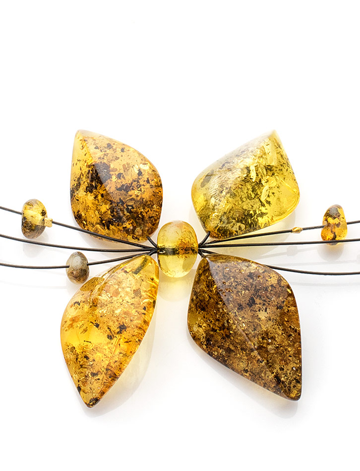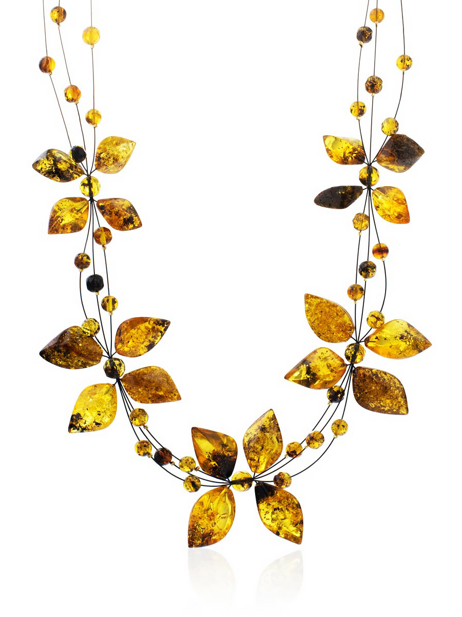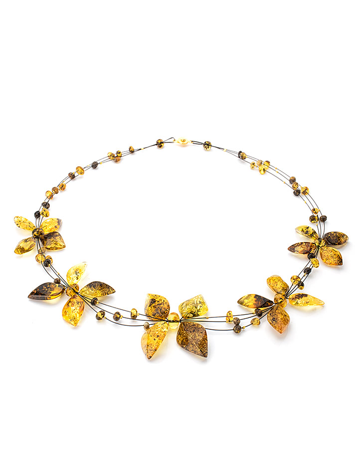 Искрящееся колье из натурального янтаря на струне «Первоцвет»