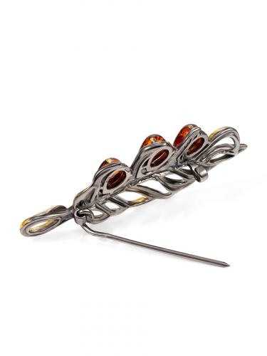 Изящная ажурная брошь с чернением и золочением «Перышко»